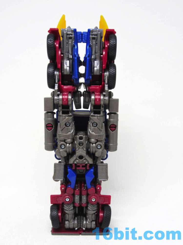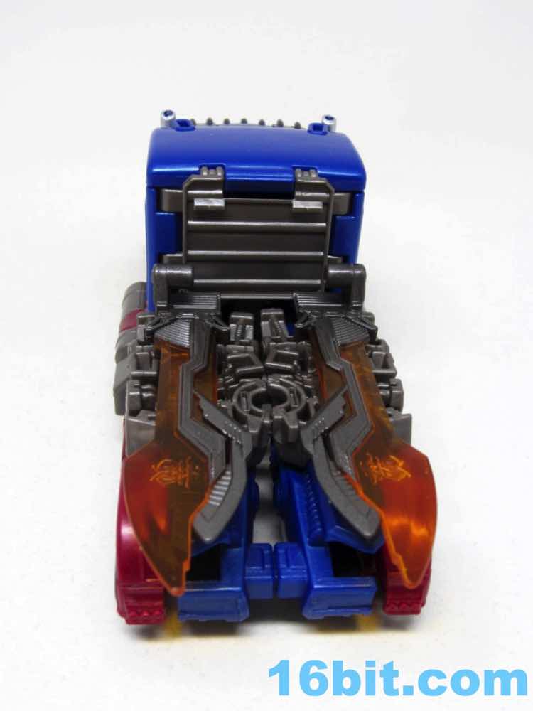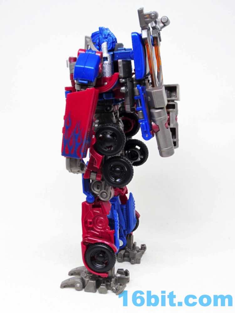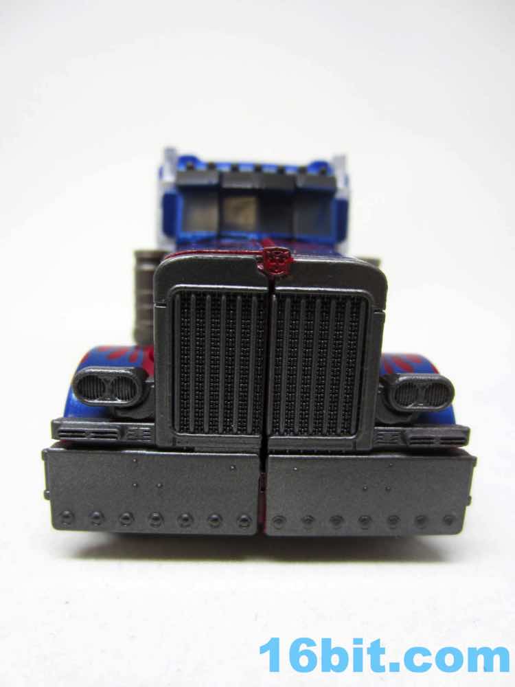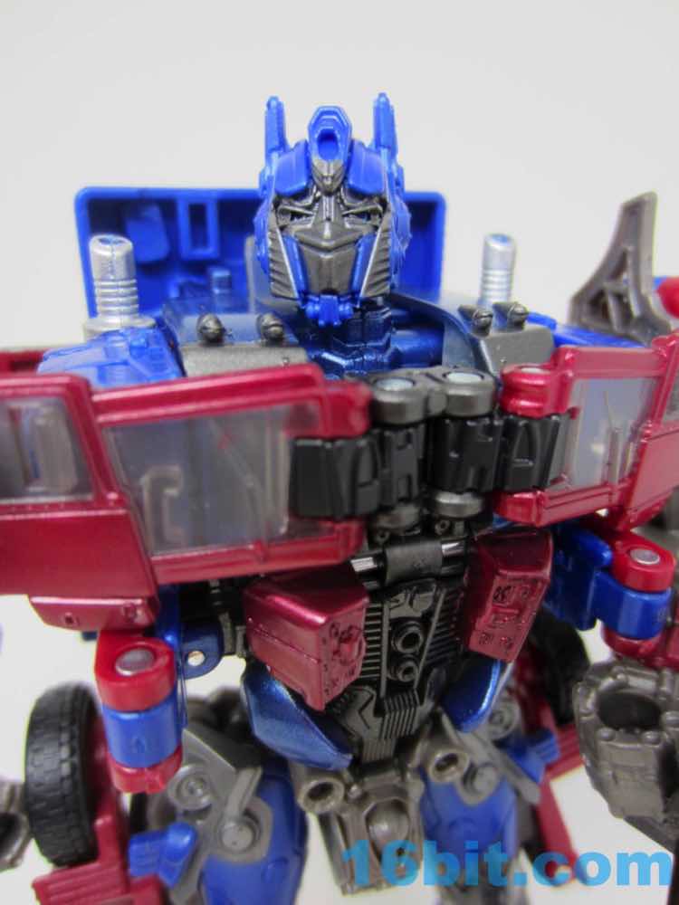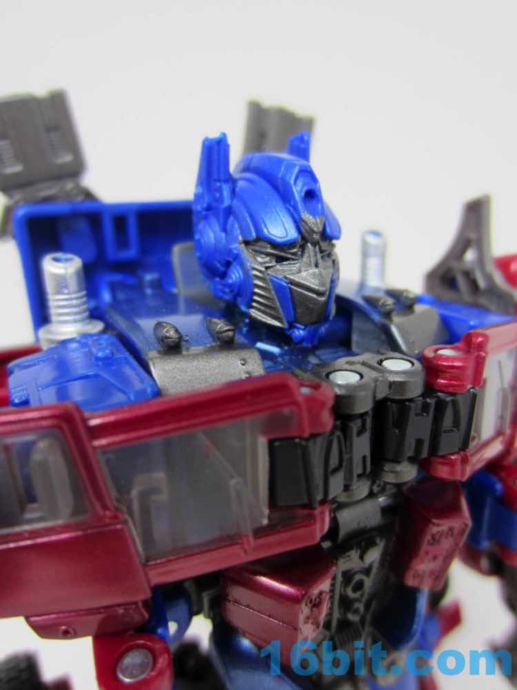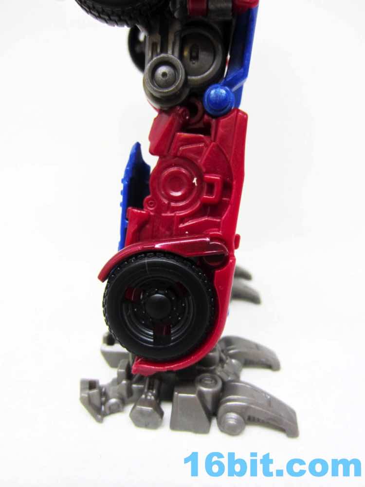 Before comparing him to my other movie Optimus toys - and I had more than I realized - I was happy with this one. It was fun to futz with, and as I had no Leaders or Masterpieces I assumed it was bigger than it was. Transformation is surprisingly involved for its size, giving you evidence that Hasbro didn't phone its newfound agreement with Takara-Tomy in. The work is there - you can see the detail, the panels, the little sculpted bits. You won't see painted wheels, or a bright shade of red, or a toy that's transformed correctly when you pop it out of the box. Check the leg wheels. You're welcome.