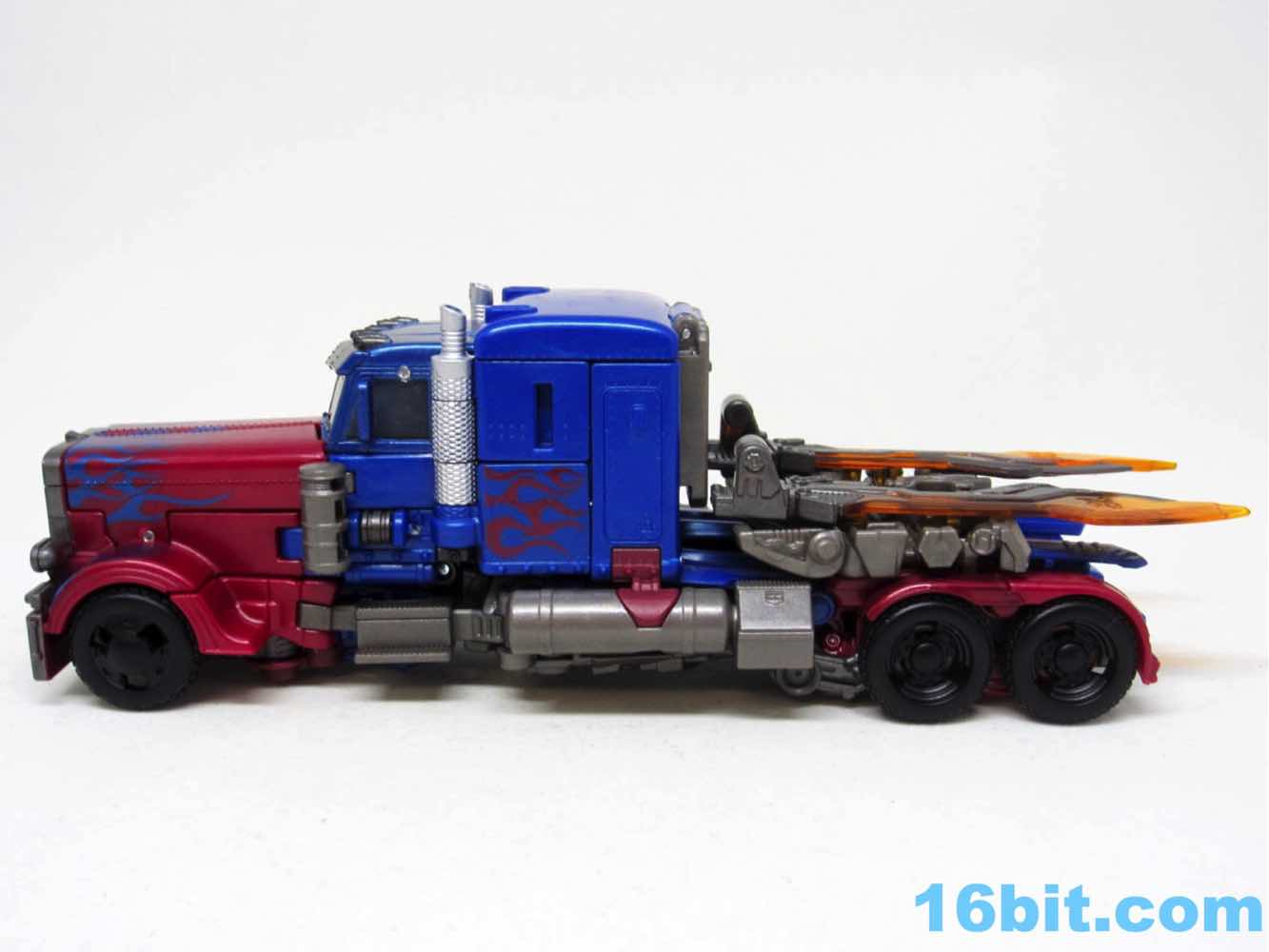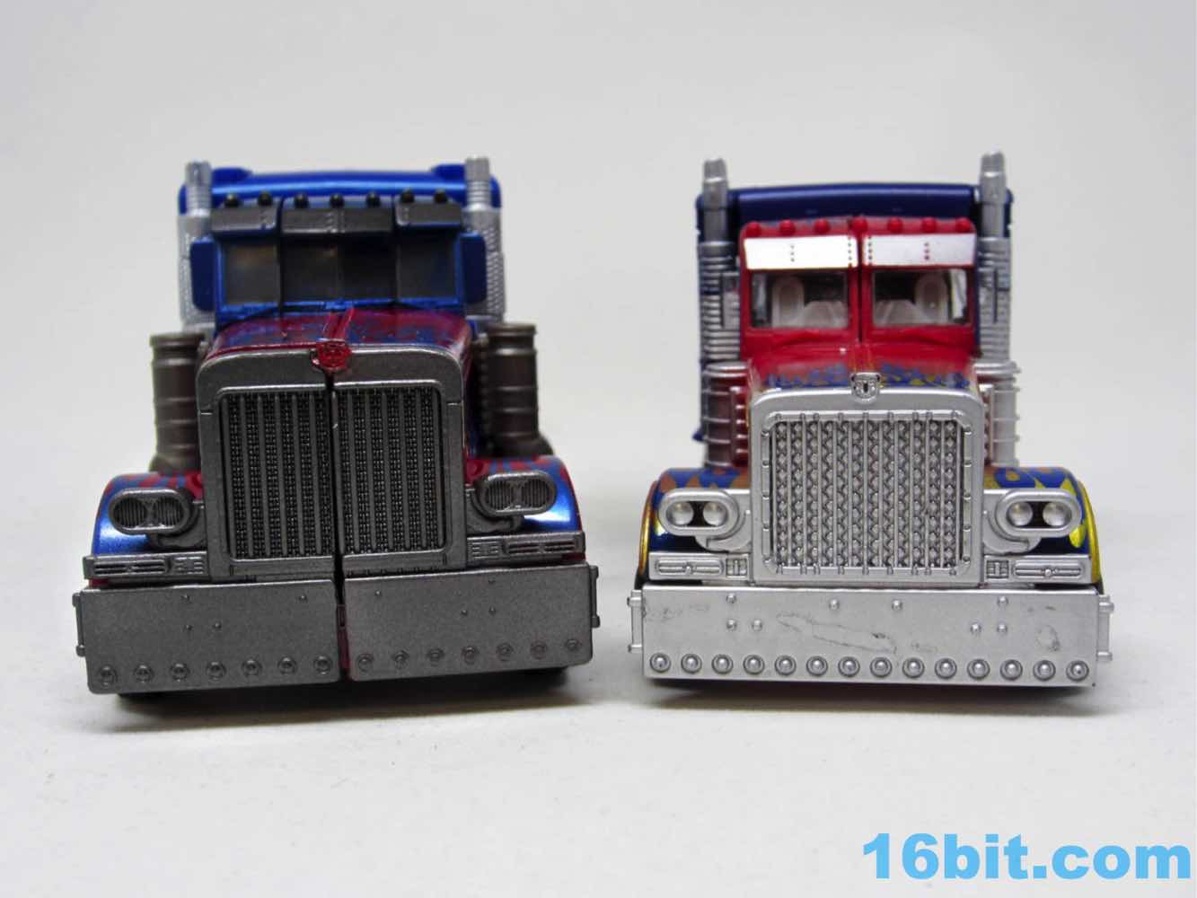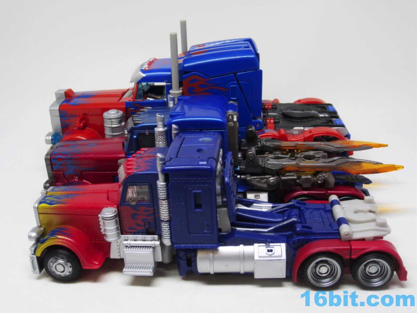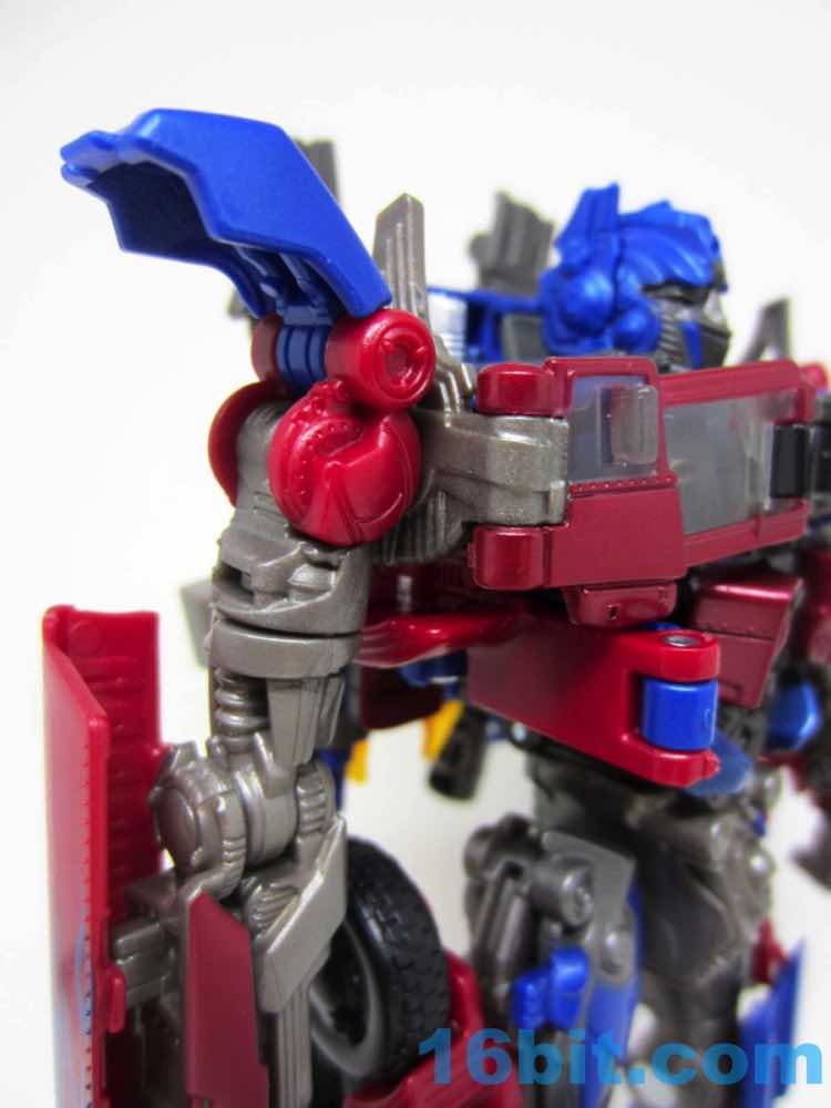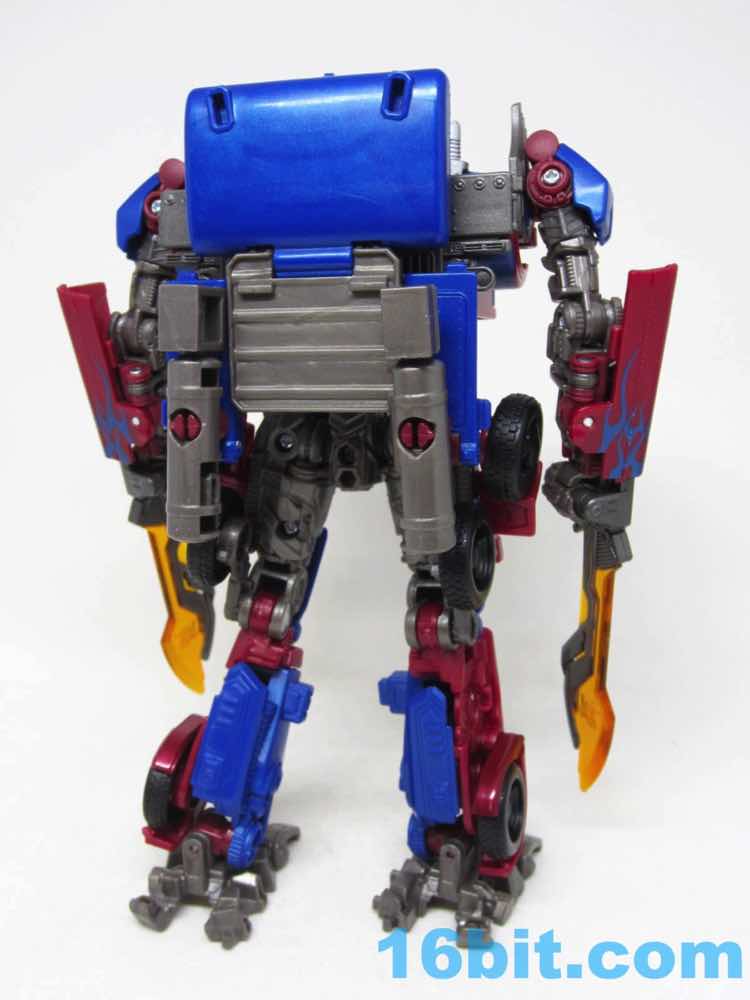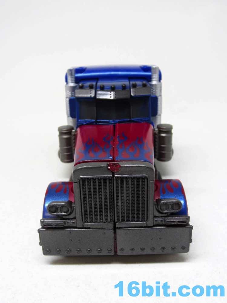 Before comparing him to my other movie Optimus toys - and I had more than I realized - I was happy with this one. It was fun to futz with, and as I had no Leaders or Masterpieces I assumed it was bigger than it was. Transformation is surprisingly involved for its size, giving you evidence that Hasbro didn't phone its newfound agreement with Takara-Tomy in. The work is there - you can see the detail, the panels, the little sculpted bits. You won't see painted wheels, or a bright shade of red, or a toy that's transformed correctly when you pop it out of the box. Check the leg wheels. You're welcome.