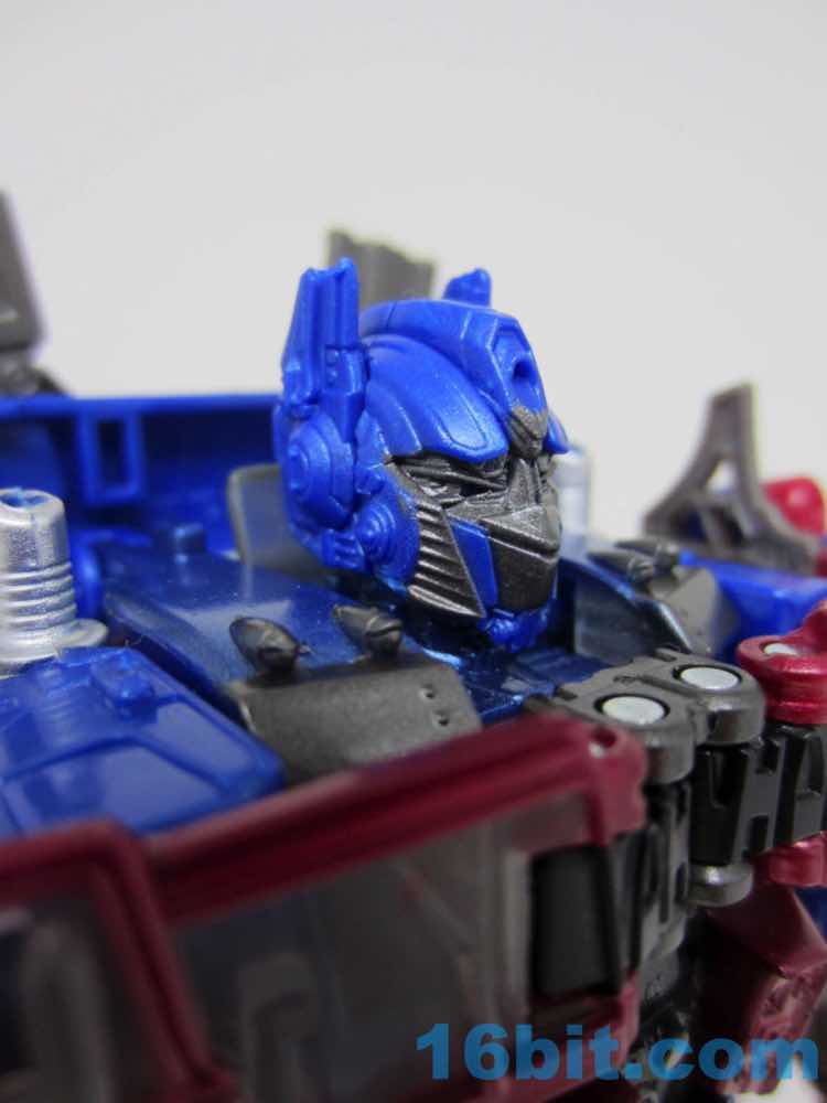 If you don't compare Optimus to other toys, he feels impressive. Skinny and sturdy with 24 points of articulation, the Autobot commander has about the same size and mobility as your average 6-inch Marvel Legends action figure. This means he's roughly in scale with his Studio Series buddies, but he's not as impressive or hefty as a Voyager Optimus Prime toy from the first movie 11 years ago. Sure, he's got more joints - but there's less paint and he's a lot darker. It just feels like you're getting less, even though there are more moving parts. The chest doesn't really match the movie chest all that much, but concessions are made when you try to fit stuff in a smaller robot at a not-Leader price point.