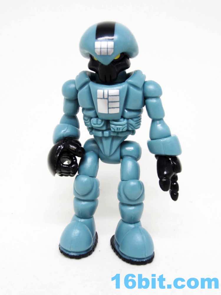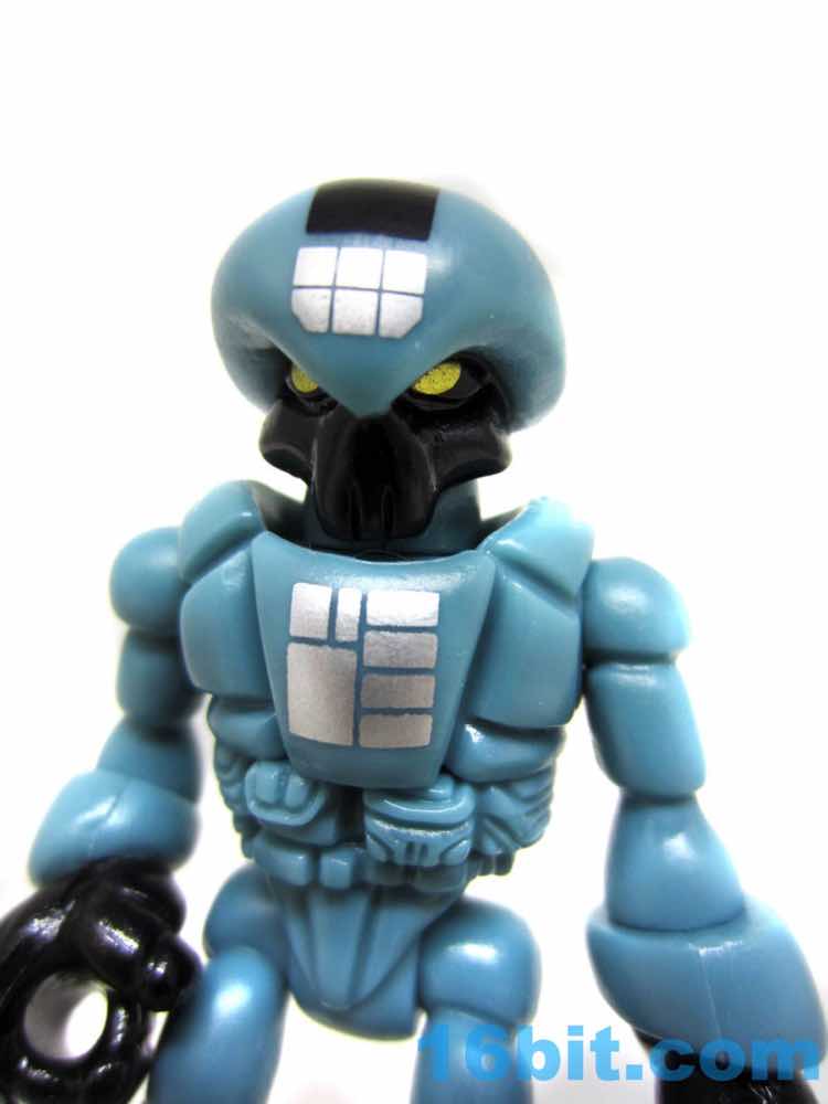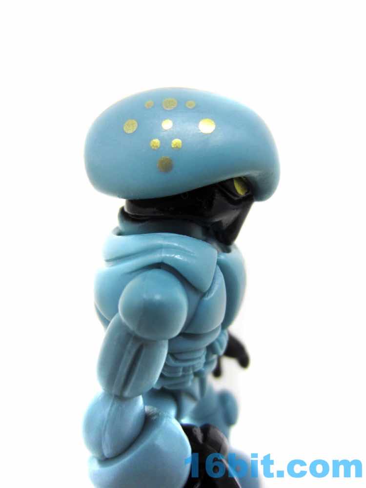 You might recognize the basic paint template from the Sarvostar [FOTD #1,882] body and one of the Optivos [FOTD #1,910] heads. What really sets it apart are a smattering of gold dots on the side. The pattern mimics that of the Alpha Star Pilot [FOTD #79], which also had shiny metallic gold dots albeit in a different pattern. The very same pattern and bluegrey plastic were previously deployed on Phanoid [FOTD #1,690] about a year ago. It's all a rich tapestry.