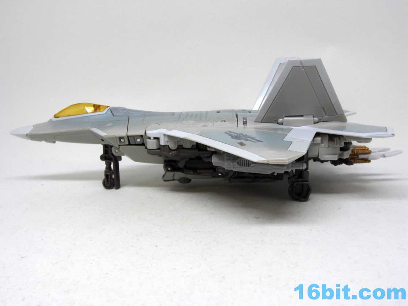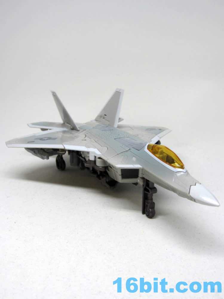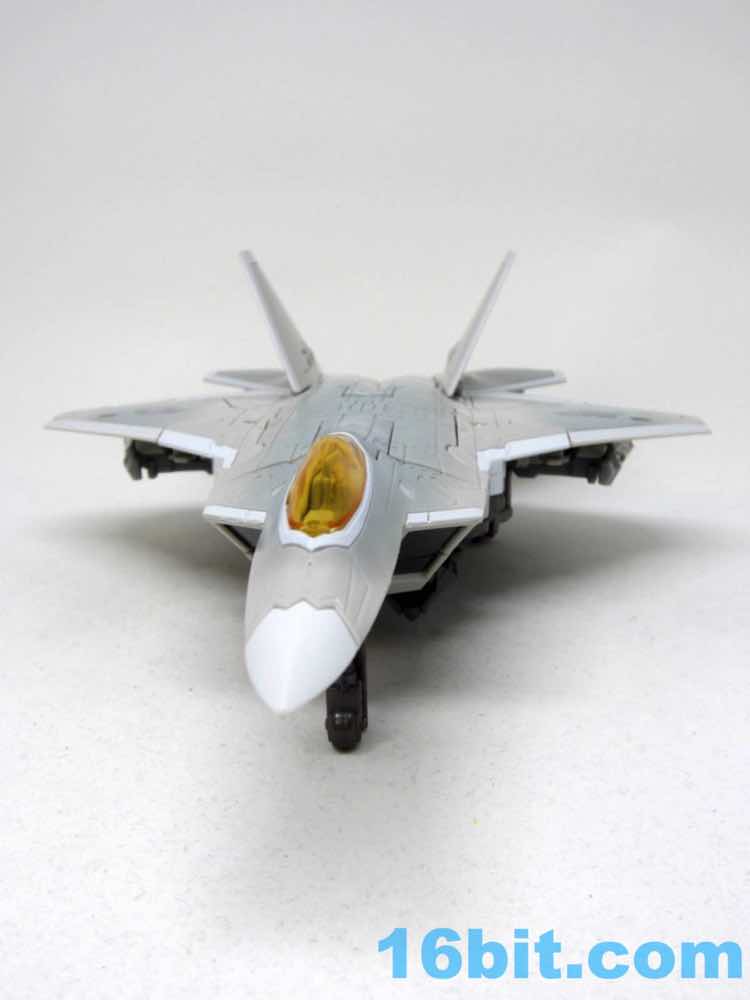 It has 3 retractable landing skids and a nice orangey amber canopy. It doesn't open like Thundercracker, but it wasn't meant to either. It's small, with the robot being more or less scale to Optimus Prime from the fight from Revenge of the Fallen, or so my reference materials tell me. It's a very nice plane. I need to get a nice stand for it.