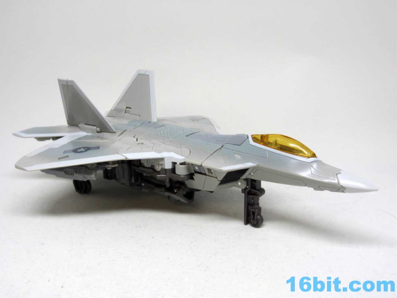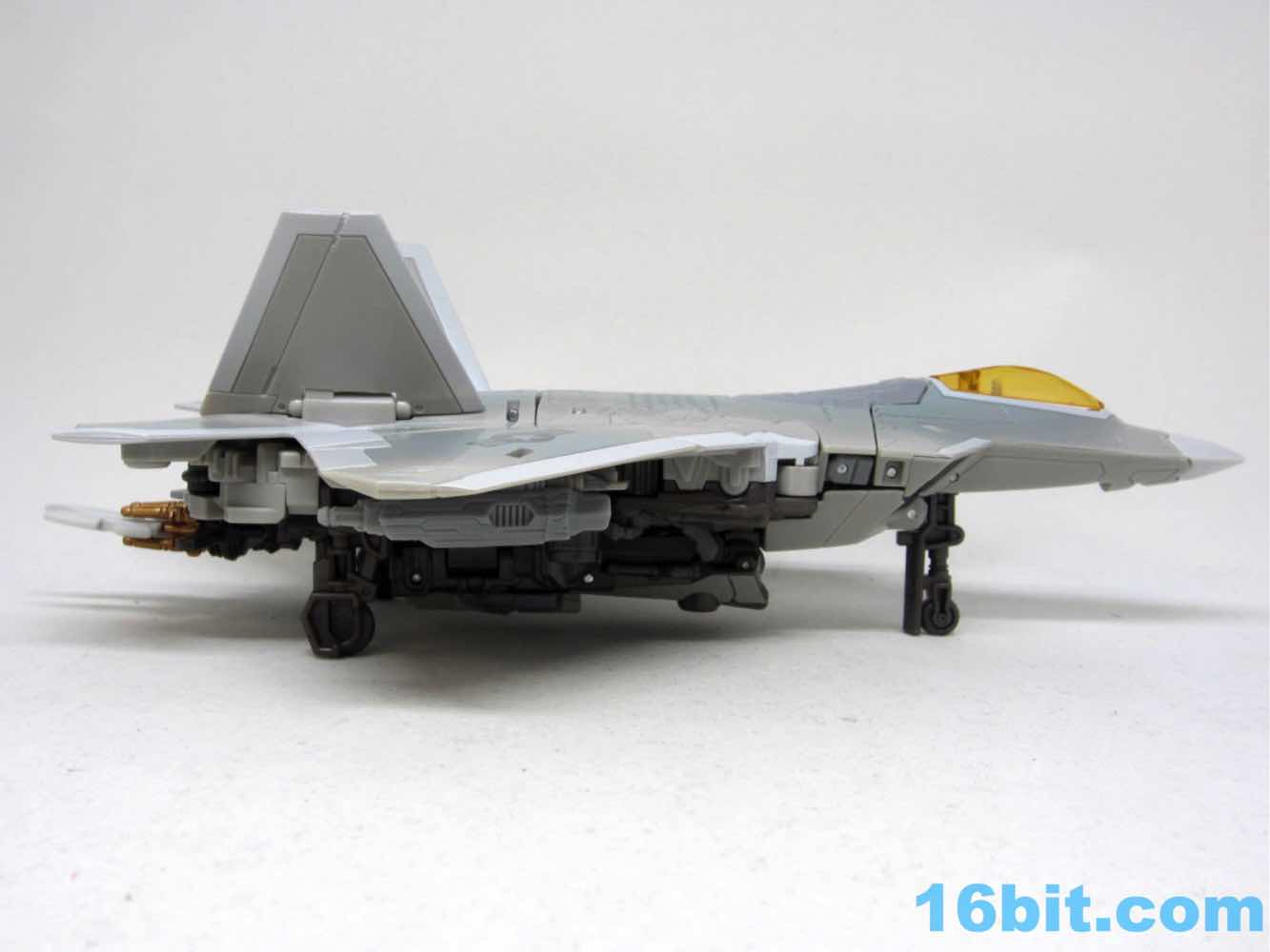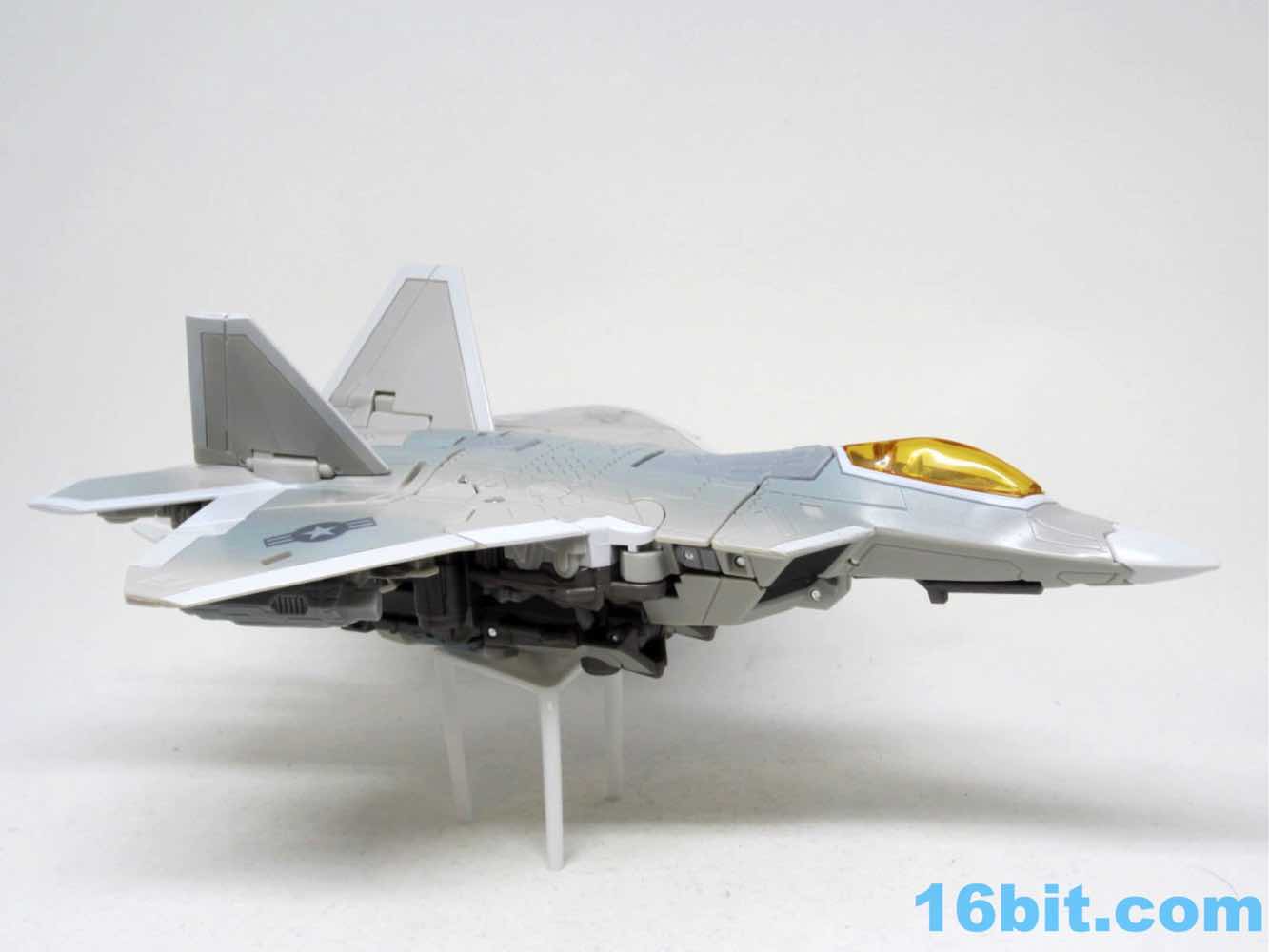 It has 3 retractable landing skids and a nice orangey amber canopy. It doesn't open like Thundercracker, but it wasn't meant to either. It's small, with the robot being more or less scale to Optimus Prime from the fight from Revenge of the Fallen, or so my reference materials tell me. It's a very nice plane. I need to get a nice stand for it.