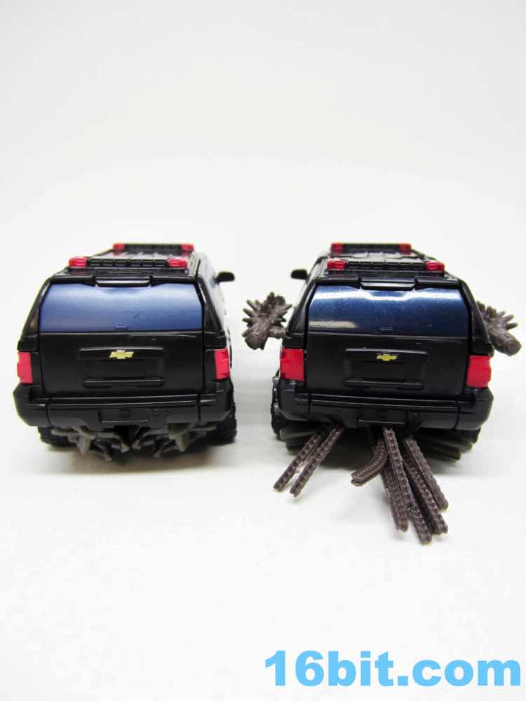 I waited to open this toy because I hated Berserker's transformation as parts would pop off - but Crowbar didn't give me any trouble. The hair is a little tough to get right, and it sticks out the car's butt, but it works. You can get it shoved together without a big fight, and I appreciate that. Between the two "brothers," this has the better quality control and just plain works better. He's got fangs and a truly alien looking head, which helps him stand out a bit from his not-quite-a-robot-Predator sibling.