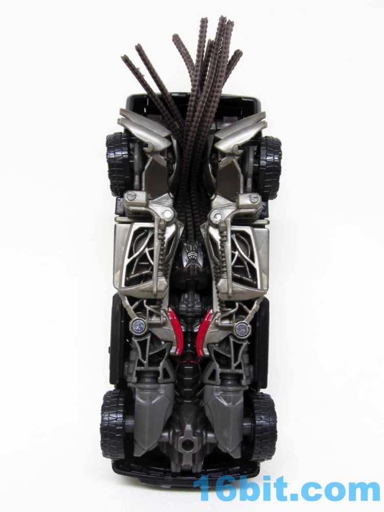 The robot is good, and while it seems to be drawn from the same strokes as Berserker, it ain't. The head has articulated dreadlocks and there are weird braids hanging off the back of the figure. The claws hands have some orange on them, but they transform differently. The legs are posed similarly, but transform differently with a different sculpt. It's amazing just how much worth Hasbro and Takara-Tomy put in to making a similar toy look different, no doubt understanding that a run of the same toy with new head would be a snooze. Articulation is good and it's a lot sturdier than it could be, but I'm having a hard time getting beyond that hair.