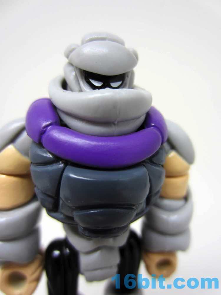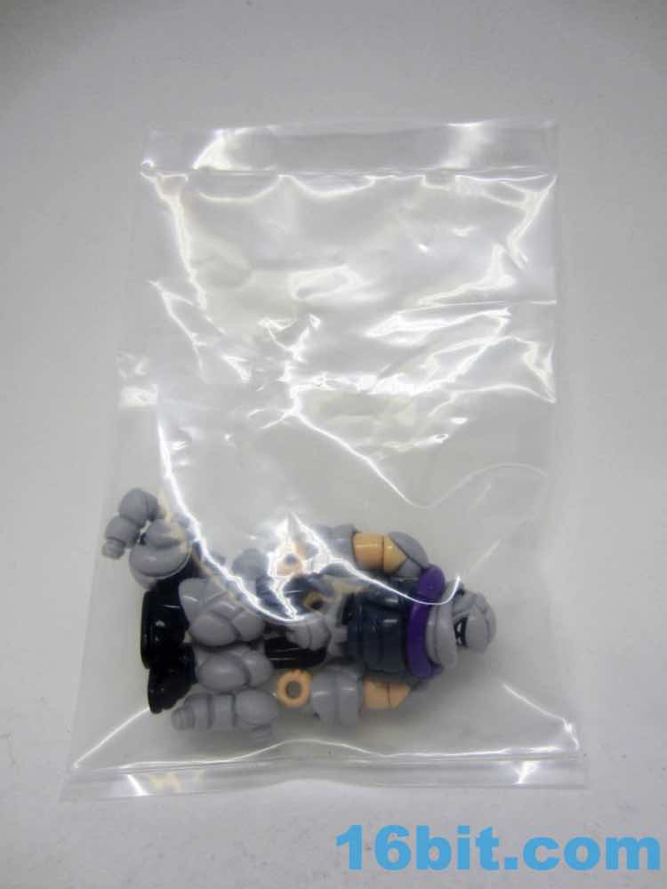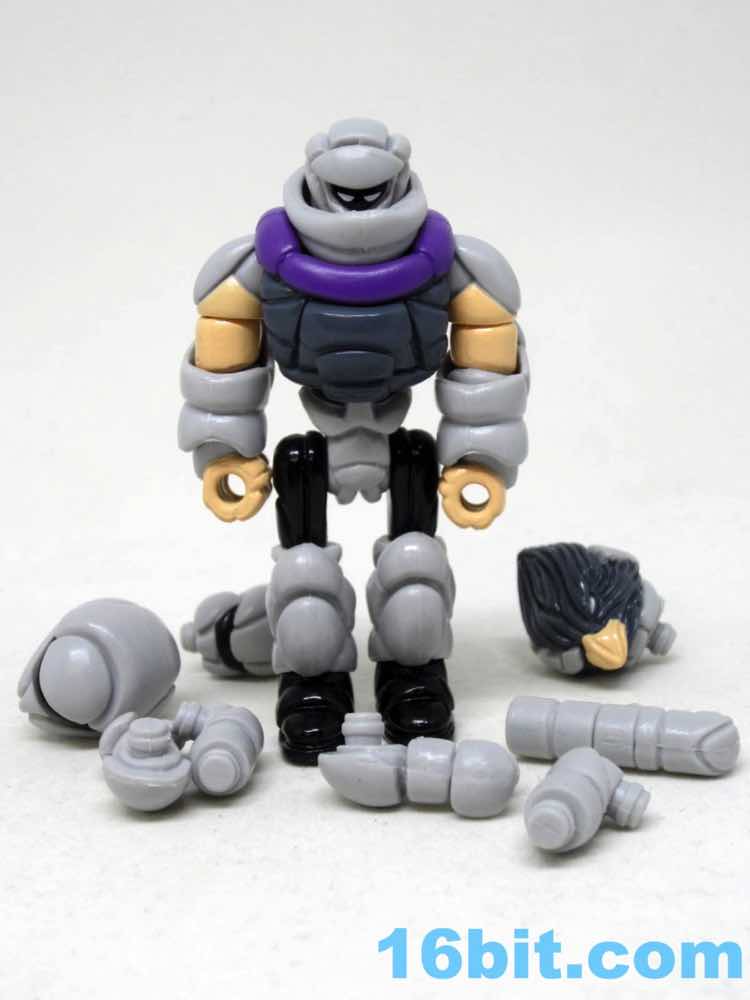 The figure comes assembled in the configuration you likely want to use, armored-up and with the default Glyan build. The newer Glyninja head is used rather than the excised Neo-Sincroid, with painted eyes and a face obscured by a "mask" made of the Scarf piece. Armor is given purple highlights to mimic Shredder's cape, and the add-on armor looks like his bladed greaves and vambraces. Minus the points. Glossy black thighs and shoes look great, with some painted flesh bits the only real deco shortcoming - you may notice the paint isn't as thick and even as we usually get on these guys. This is pretty uncommon for Onell Design products, and this is one of very few times I've ever seen anything less than A++ deco. This is still good, and better than most mass production items with light paint on dark plastic.