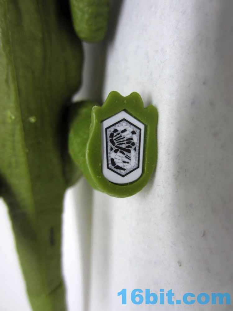 There's an app interactive "DNA" mark on the sole of one foot, giving you some animation and trivia on a smart phone. More interesting is the trapdoor mechanism for battle damage - it rotates in and out easily, showing a "wound" when a bigger dinosaur bites down. It's really fun to futz with, and a great fidget feature. I like this more than permanently wounded figures from the old days, or easily-lost flesh pieces. Hasbro had some similar trapdoor features on its Jurassic World toys a few years ago, too.