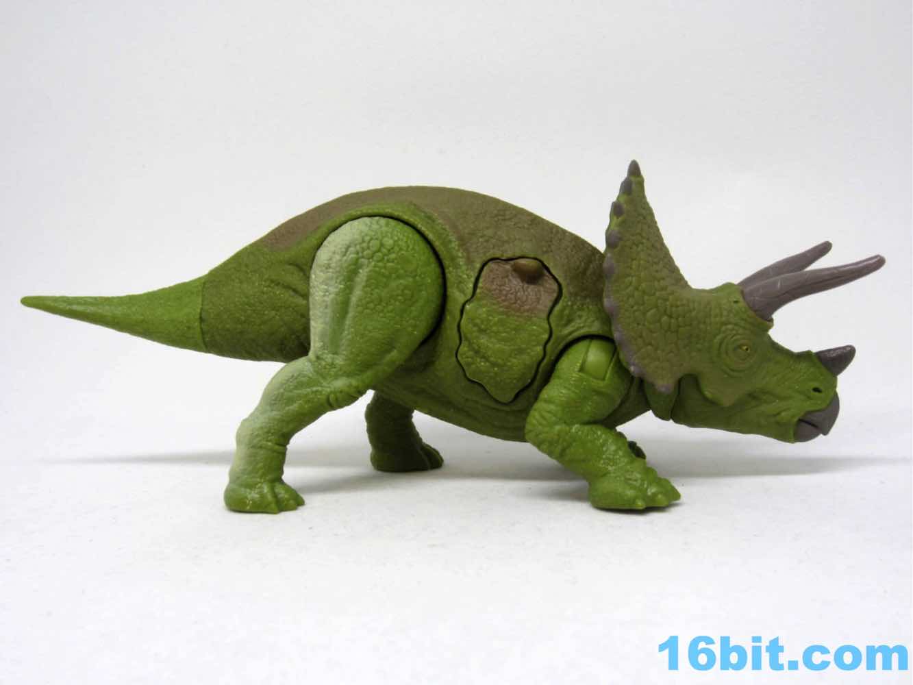 Mattel Jurassic World Battle Damage Triceratops Action FigureScale was important for Mattel, but it's not perfect in terms of execution. Most of the figures are roughly 1:18 scale (for 3 3/4-inch figures), with the Battle Damage Triceratops being comparatively tiny - maybe it's a baby, or maybe its mother smoked. Like the minis, and the giant T-Rex, this one is a bit out of whack - but it's a good $10 toy and a good size for small hands. At 8-inches long, it would probably be a bit over 3-meters were it truly 1:18 scale, so let's go with that. As a green juvenile dinosaur, I like it.