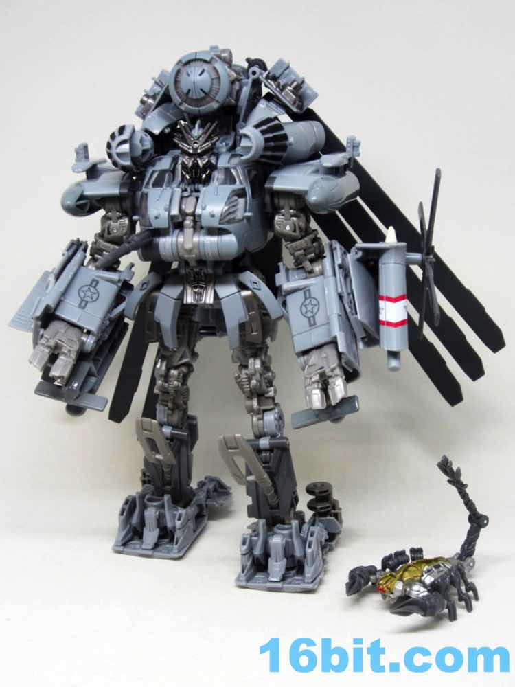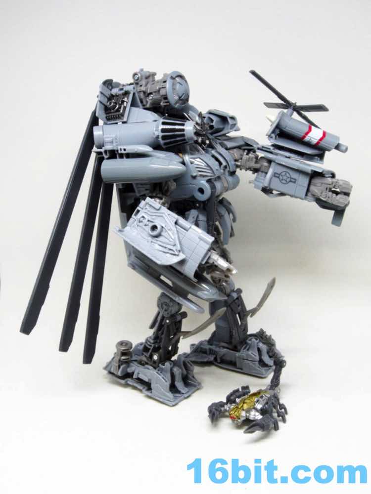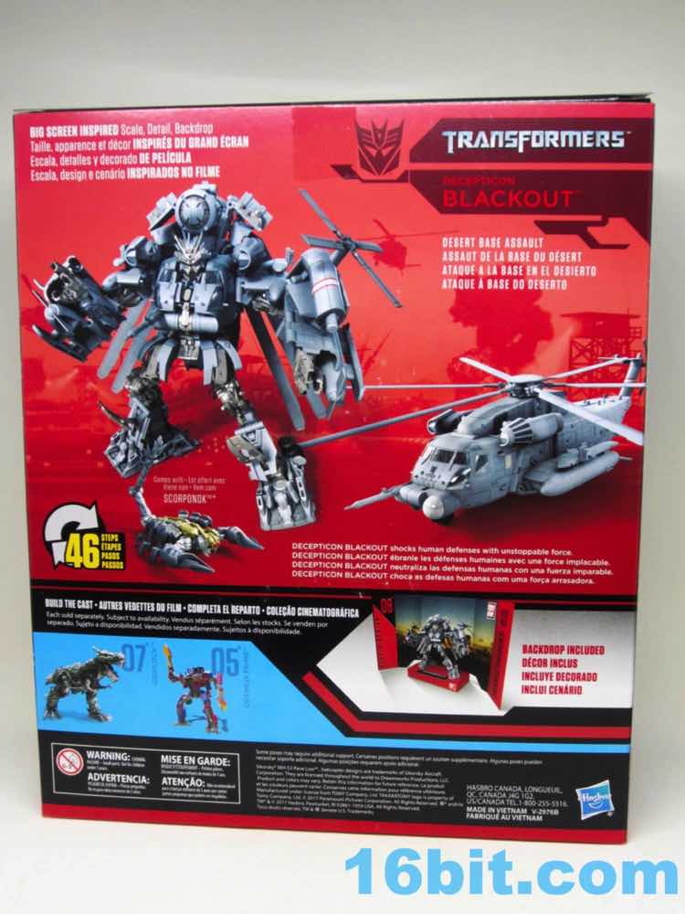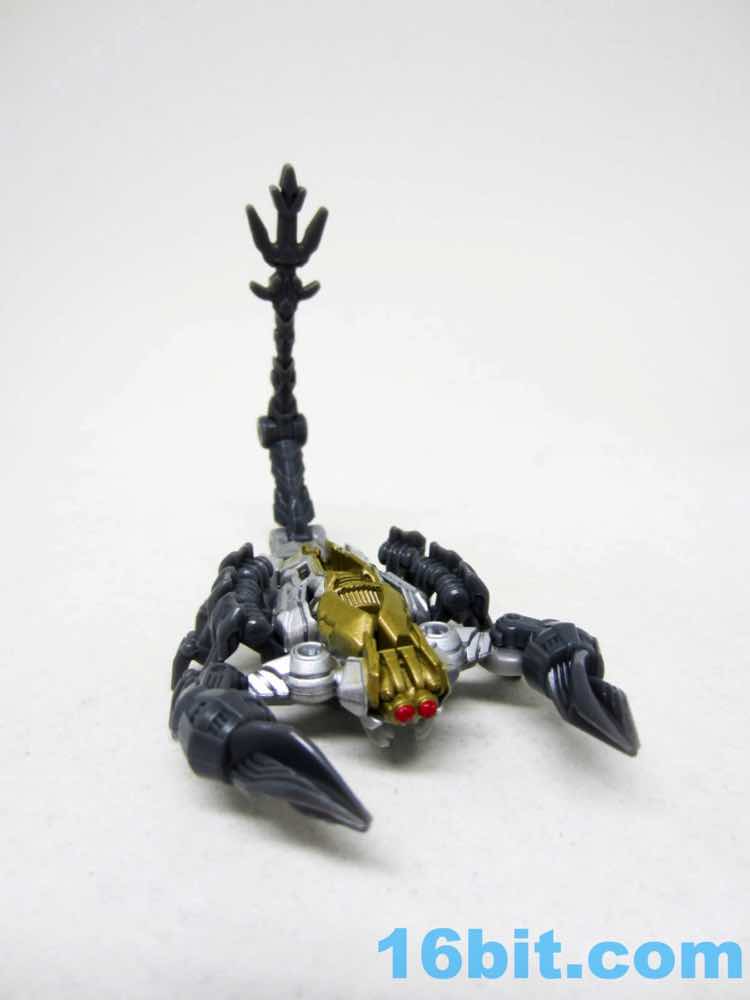 As a bonus item, Scorponok's awesome. It's small and has limited articulation - it does not transform. The tail has two joints, and each claw can move. Silver, gold, and red paint bring it some life with a surprisingly nice face. It's a cool sidekick figure and better than I would normally expect for this kind of a toy. The legs don't move, but I'm fine with that. The figure can also mount on Blackout's back or inside his helicopter tail.