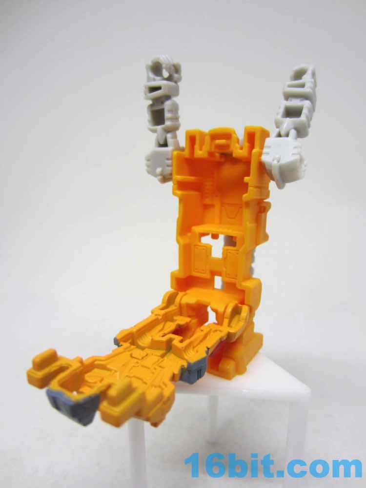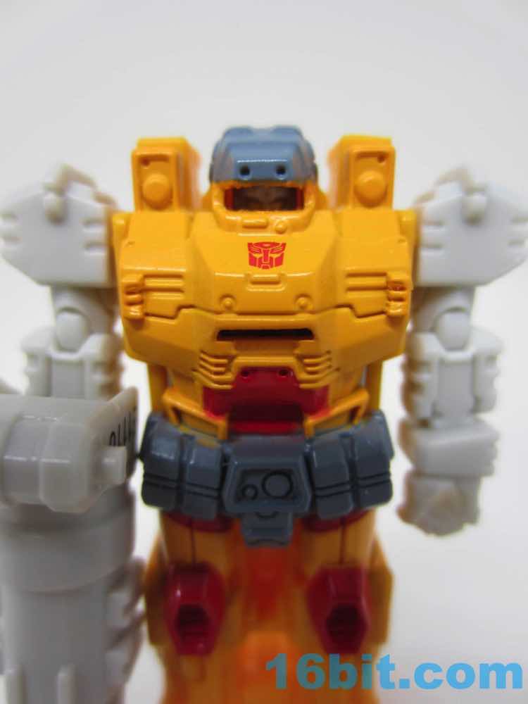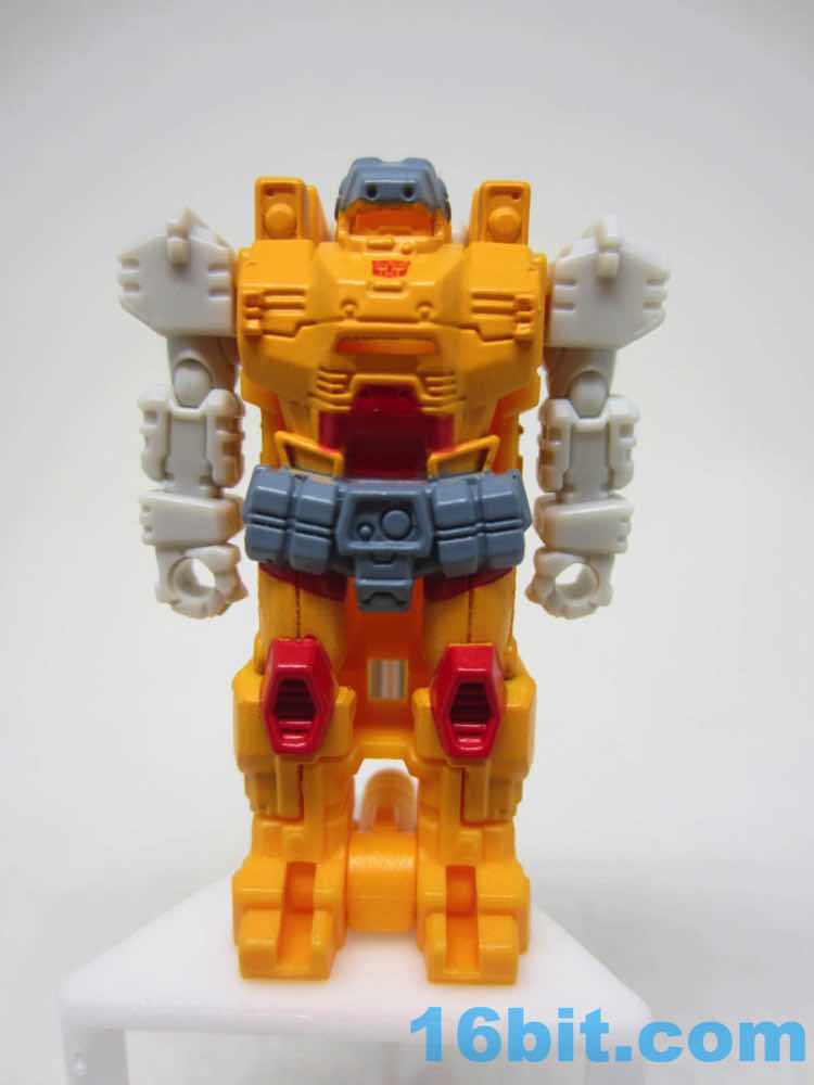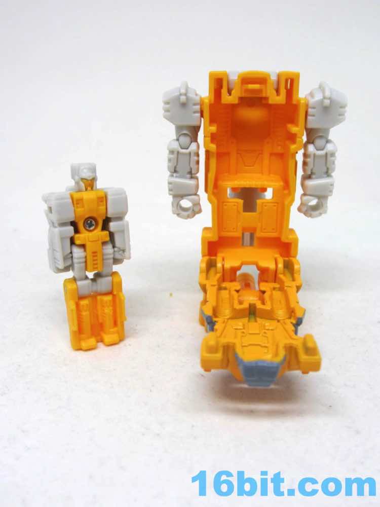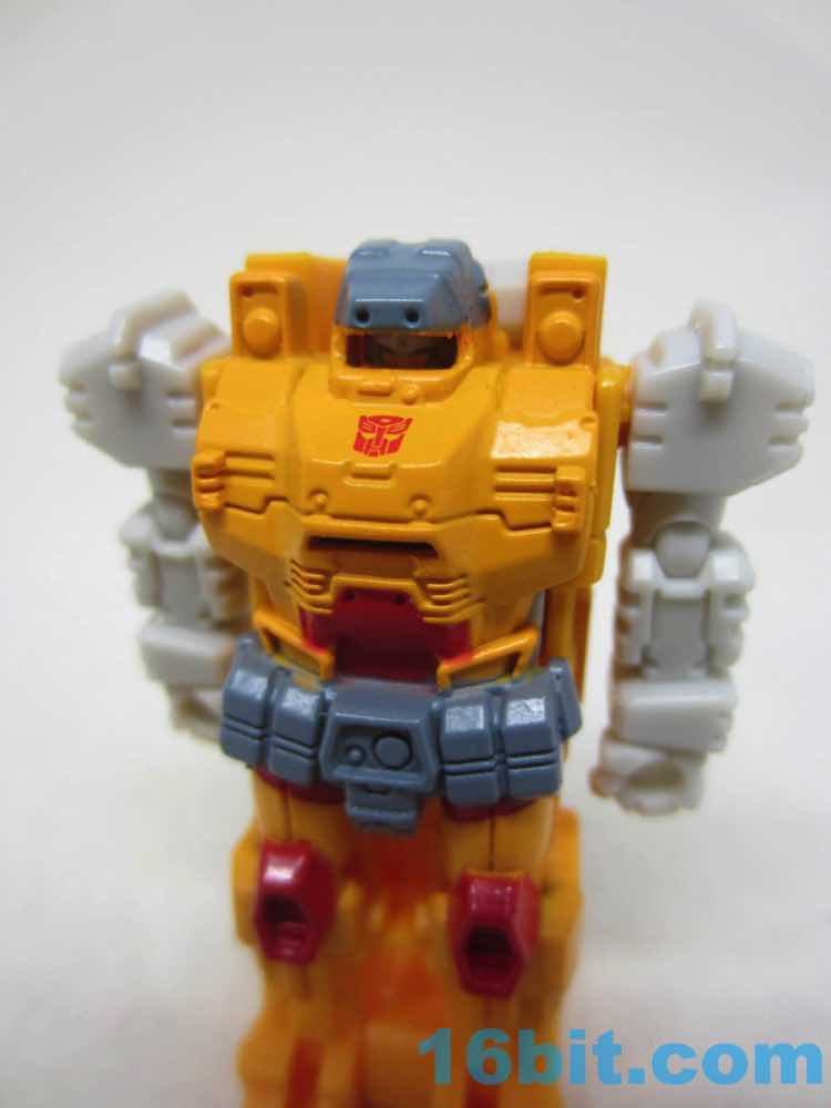 The inner Alpha Trion robot fails to carry over the original Landmine colors or general design. It does have grey arms and a grey head with yellow face like the original, but the sculpting and body don't match at all. He has 5 points of articulation and does what these guys normally do - stand, sit, pilot, or fill a suit. It's fun, but it's not Landmine if you had one as a kid.