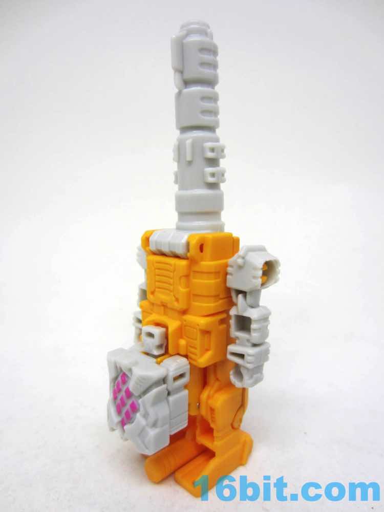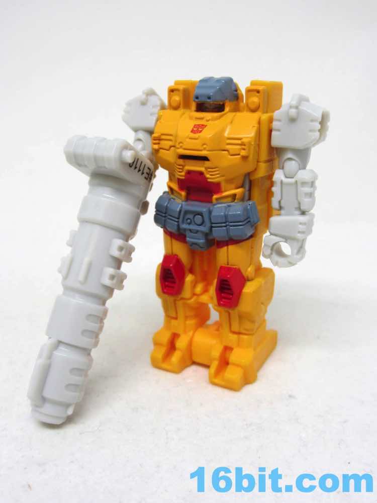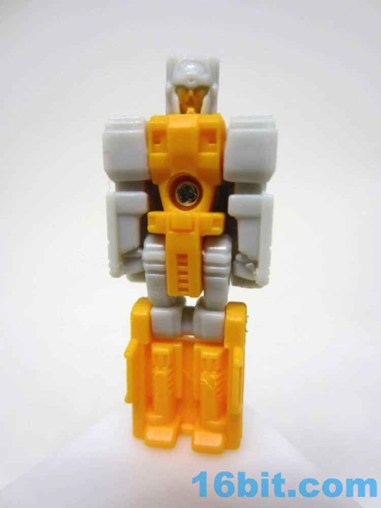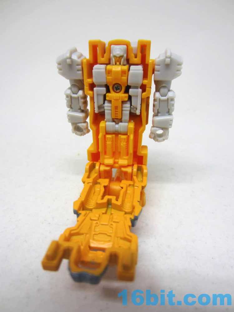 Transformation is incredibly easy. The inner robot goes from a "Prime Engine" to tiny robot - or also a head if you want. The robot shell can become a gun. The Alpha Trion symbol is a patch of diamonds. He has a painted face, but the front of the toy is otherwise unadorned and looks neither like Alpha Trion or the the original Landmine robot.
