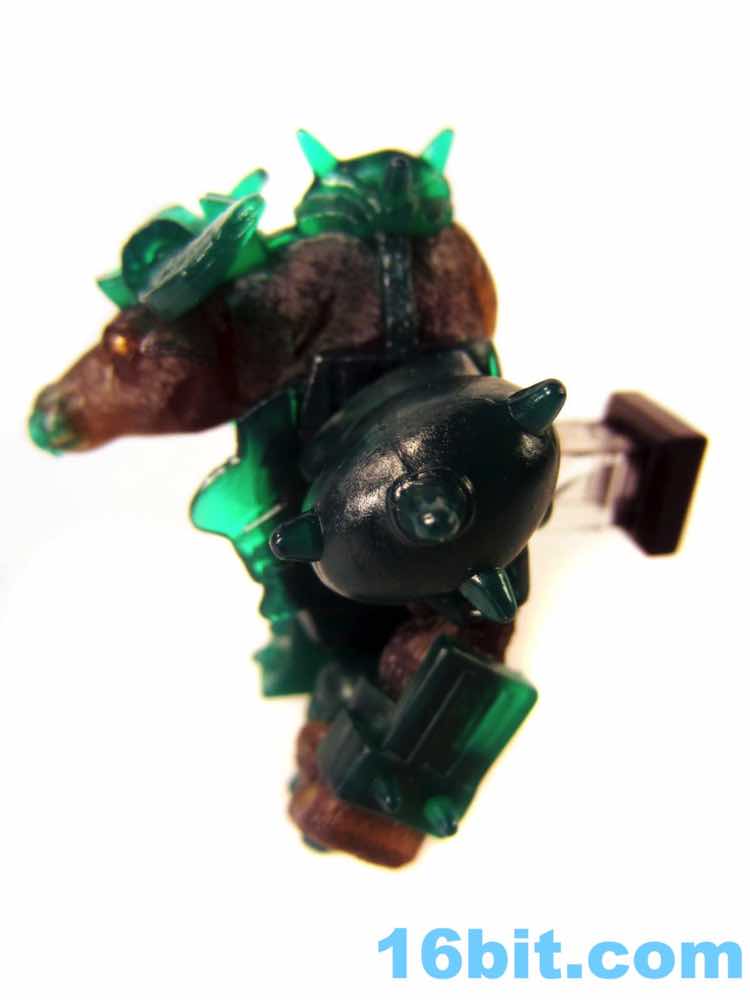 The soda-like Buffam Burst has 4 joints and stands 3-inches tall. The clear brown/black looks good for the furry parts, and the crystal dark green armor is fantastic. It looks kind of like a very dark Coke bottle Takara-Tomy went the extra mile by casting the septum ring in green, giving it an added level of production quality I didn't expect to see on a cheap blind-box game figure for children.