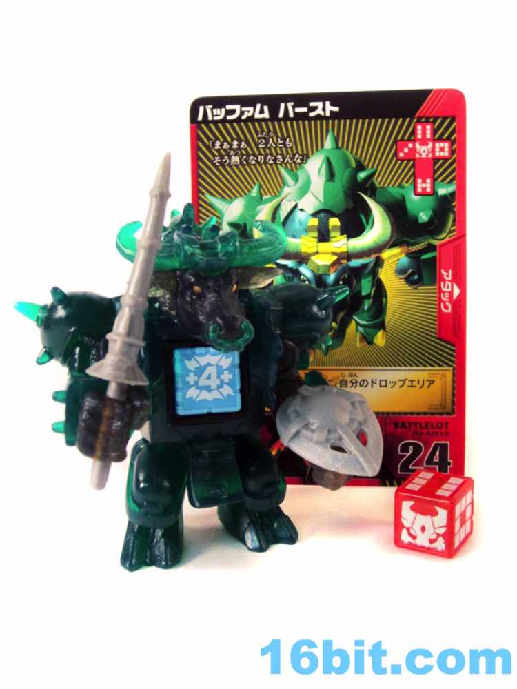 Item No.: BS-40 Manufacturer:Takara-Tomy Includes:Spear, shield, 2 dice, trading card Action Feature:Dice launch out of stomach Retail:525 yen (or about $7) Availability: March 2013 Other: No wings, not wild