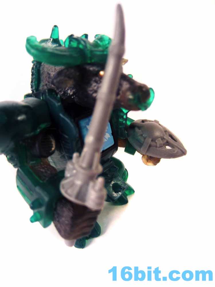 With jointed arms and legs, it's a decent and big figure with cool spike shoulders, big green horns, and a nifty spear to go with his shield. I can't complain about the hooves on the armor and clear nature of the figure, especially now that the line has ended. I find myself wishing this toy line could have gone global, but there's definitely a wall in some countries. If you feel so inclined, get yourself one - it's good. It has some nice heft and articulation for the asking price at the time of release, and if you can score one for less than that you owe yourself a few of these figures.