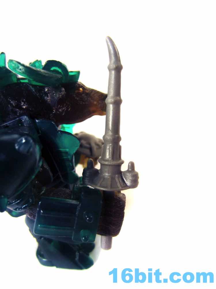 The clear Buffam Burst is another great figure you ignored. Cast in a clear cola-color plastic for the skin and a dark green for the armor, there's precious little paint here. I see golden eyes, and some pigment on the dice - other than that, it's molded in color. These came out five years ago and I still love the dual-color injection molded plastic, as this is a kind of design choice I don't see much outside of Playmobil. The figure has 3mm fists, so he can probably share parts with Playmobil and LEGO depending on the tolerances.