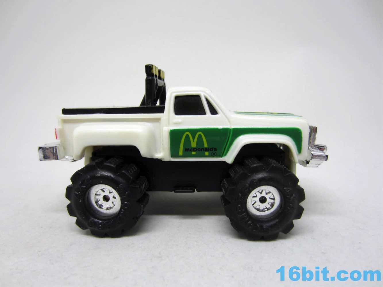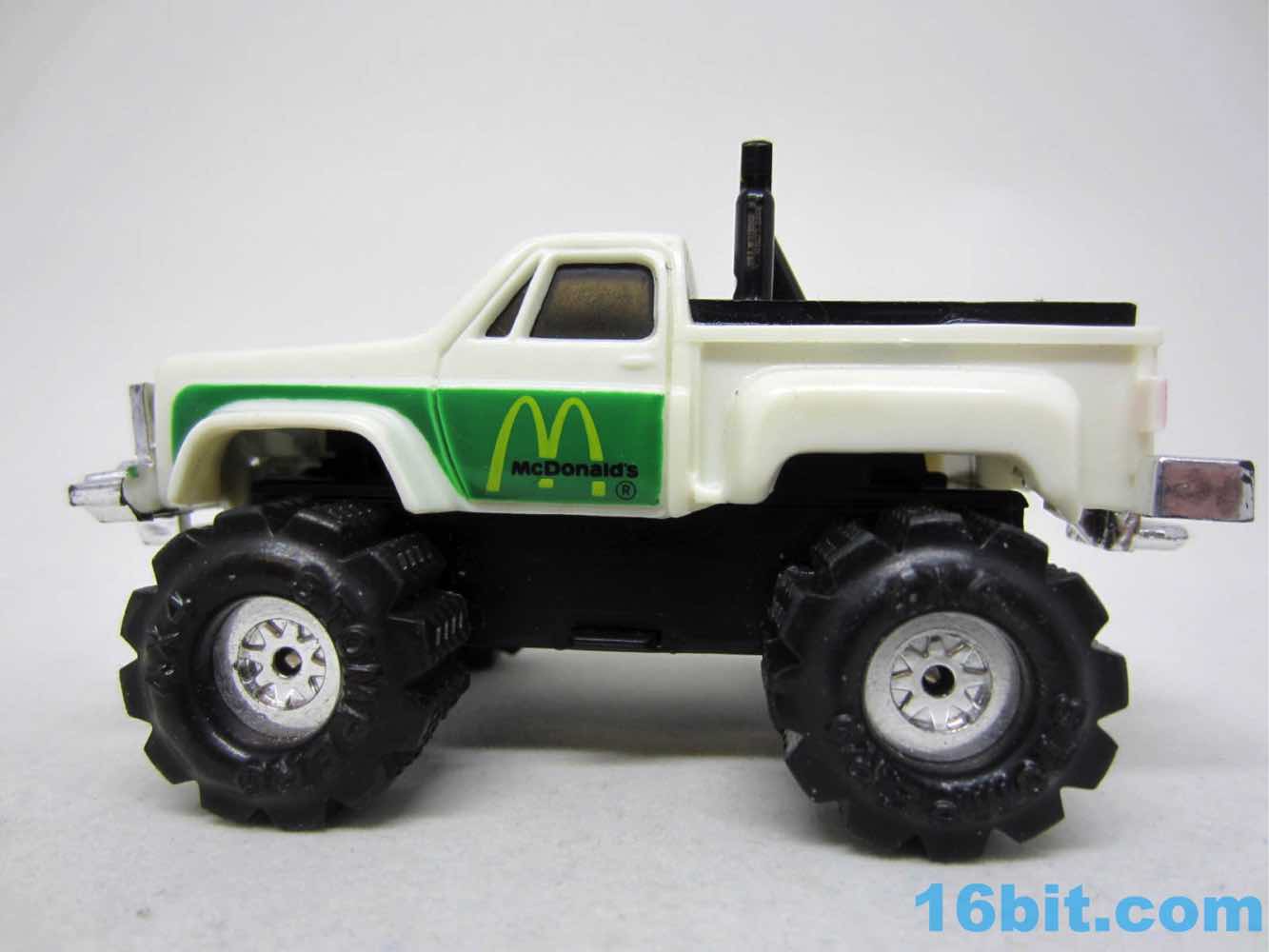 The 1980s toy lines were only as good as their marketing, so taking a nifty vehicle brand and adding McDonalds branding helps. The Happy Meals had lesser rolling toys that were smaller and couldn't roll. Retail stores and this mail-in offer had motorized trucks with knobby tires and working lights, all powered by a single "AA" battery. These were pretty popular for a couple of years, too. They were more interesting than a Hot Wheels car, plus they actually could do something by themselves without tracks or launchers. The truck was the toy.