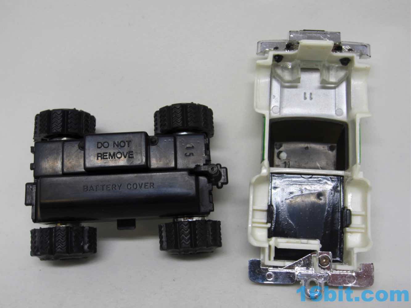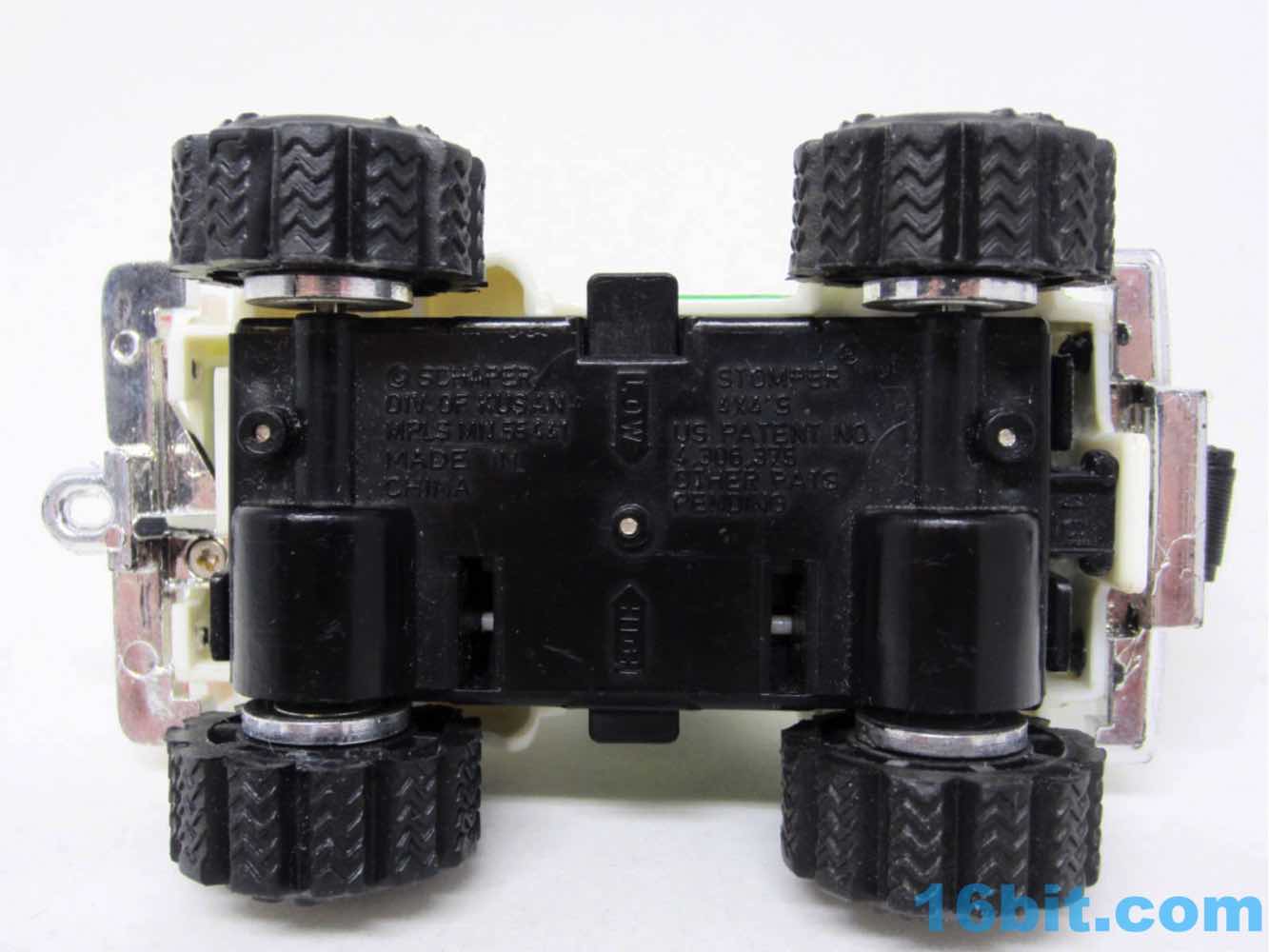 A switch under the truck could let it roll in 4x4 mode, supposedly able to do things like drive over your fingers. I couldn't get it to crawl over other toys very well, but it was fun to roll on the table. A free-wheeling mode lets you move it around with just your hand, so you could send it down a ramp or something.