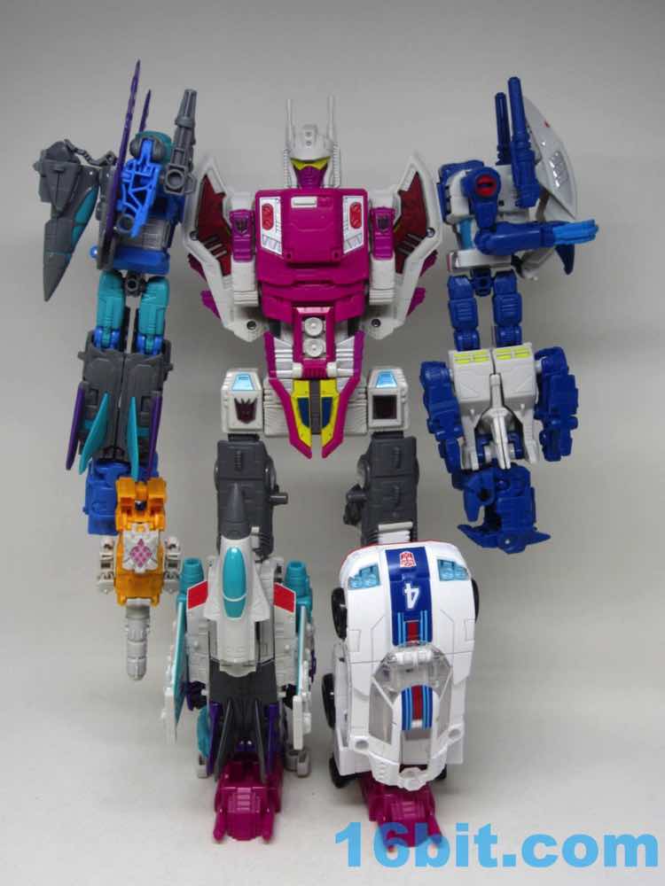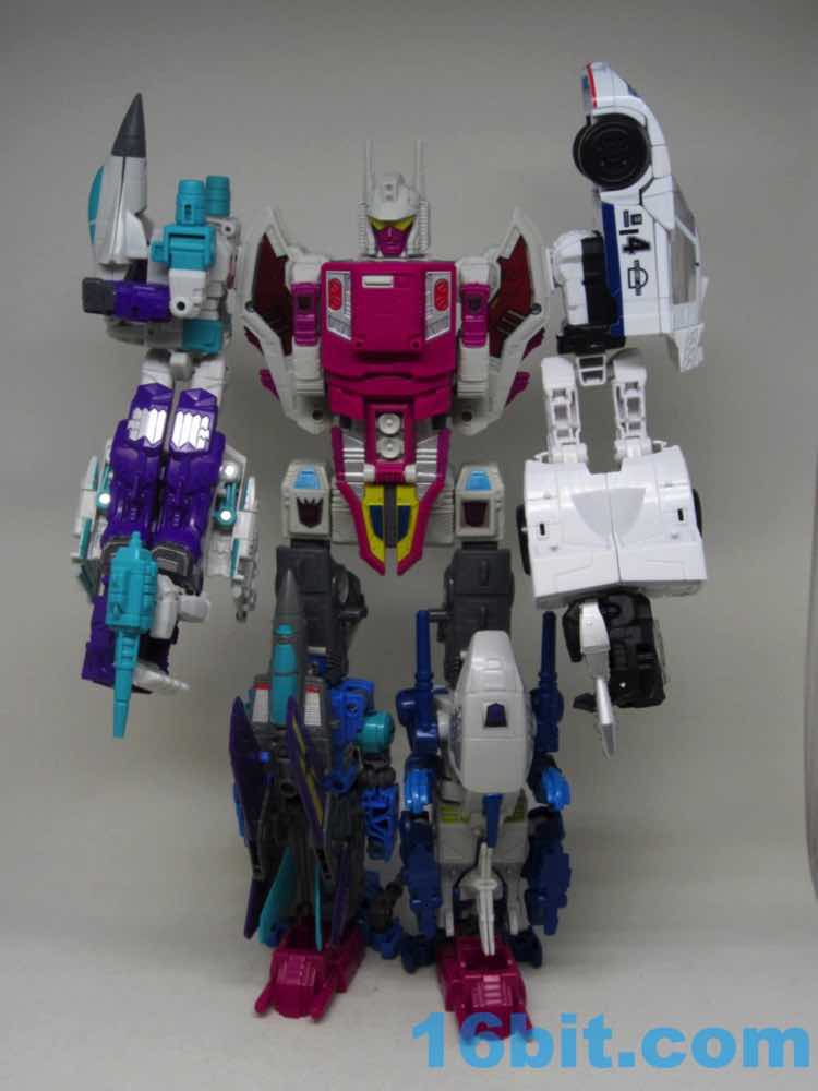 The toy mold is Combiner Wars Air Raid with some hefty modifications. You've seen parts from this toy on just under 20 toys so far, with an almost identical transformation each time. It makes sense to exploit the tooling to get as many characters out as possible, although we're approaching a point where it might be great to see the molds retired except for repaints.
