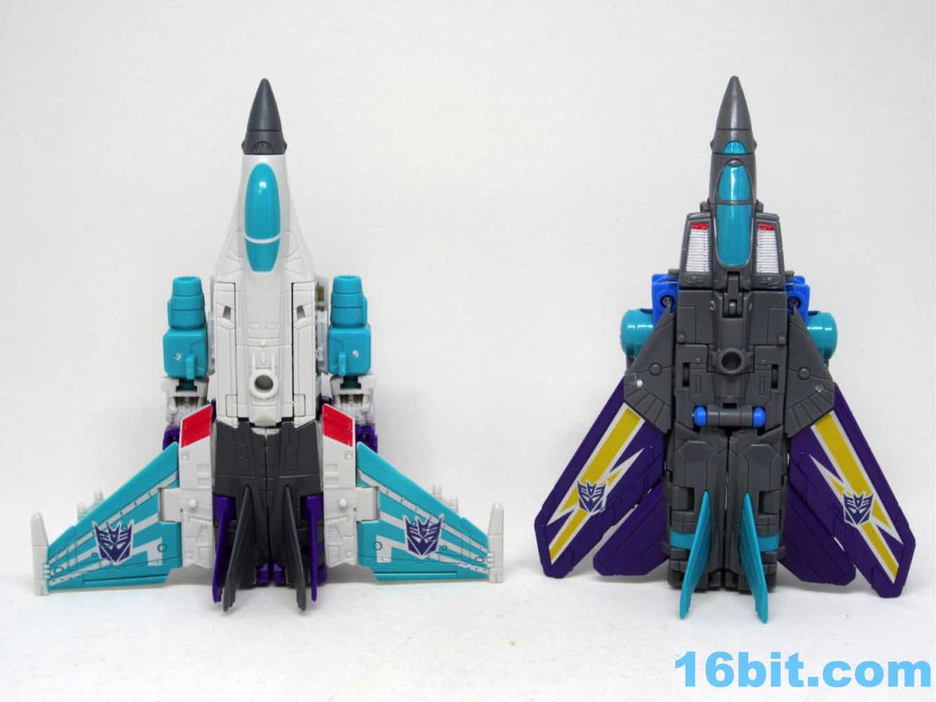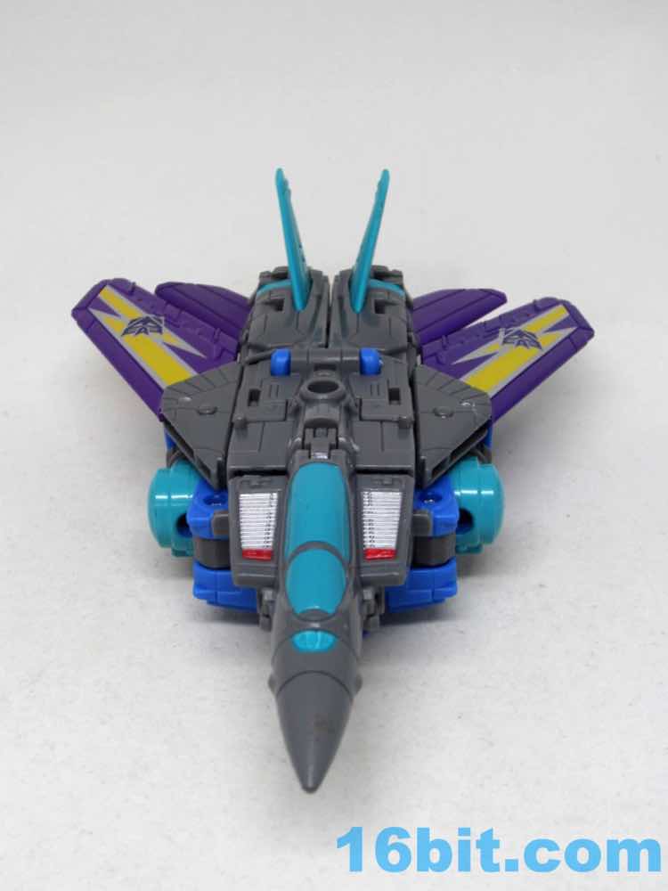 Transformation is easy, with a few extra tabs added from the other toys. My vehicle mode had bent blue wings requiring some boiling water to get back in position, so be careful with any repairs you may need to do. In addition to the normal jet there's a "Jet Centipede" mode in the instructions so you can ram him into fellow jet Dreadwind. The results aren't particularly satisfying, but the original toys could do this so now you can, too. I appreciate and thank the designers for having done this, but after this review I will never use this mode again.