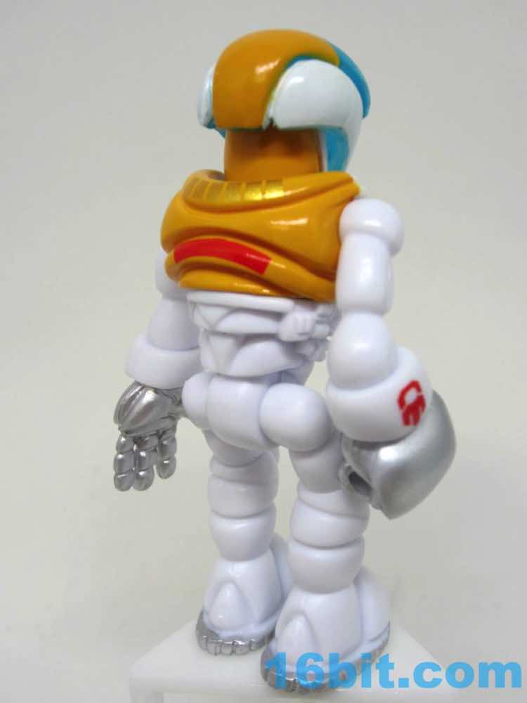 The front of the body is no slouch either. The gold chest tampo recalls the original figure's belt buckle, and the design on the wrists looks similar-but-different to the original figure's markings too. The silver gloves and soles remain, and while the goggles on the helmet are gone, we do have stripes on the "mouth." Like the best designer vinyl figures, Onell Design brought out the figure's best qualities with paint that you couldn't quite do with sculpting.