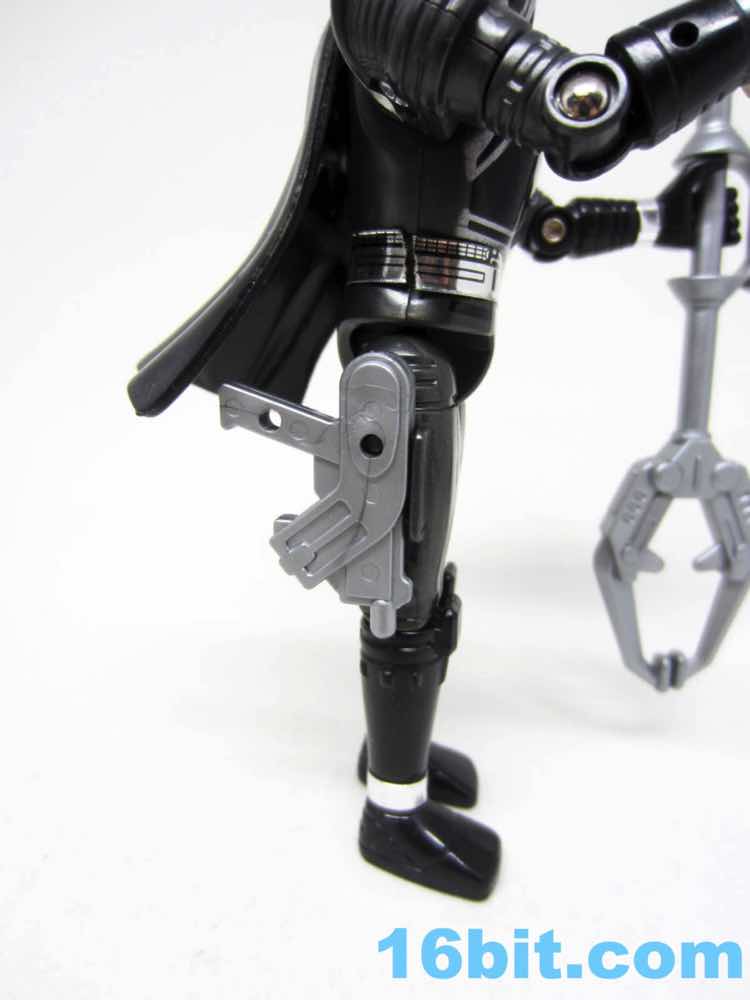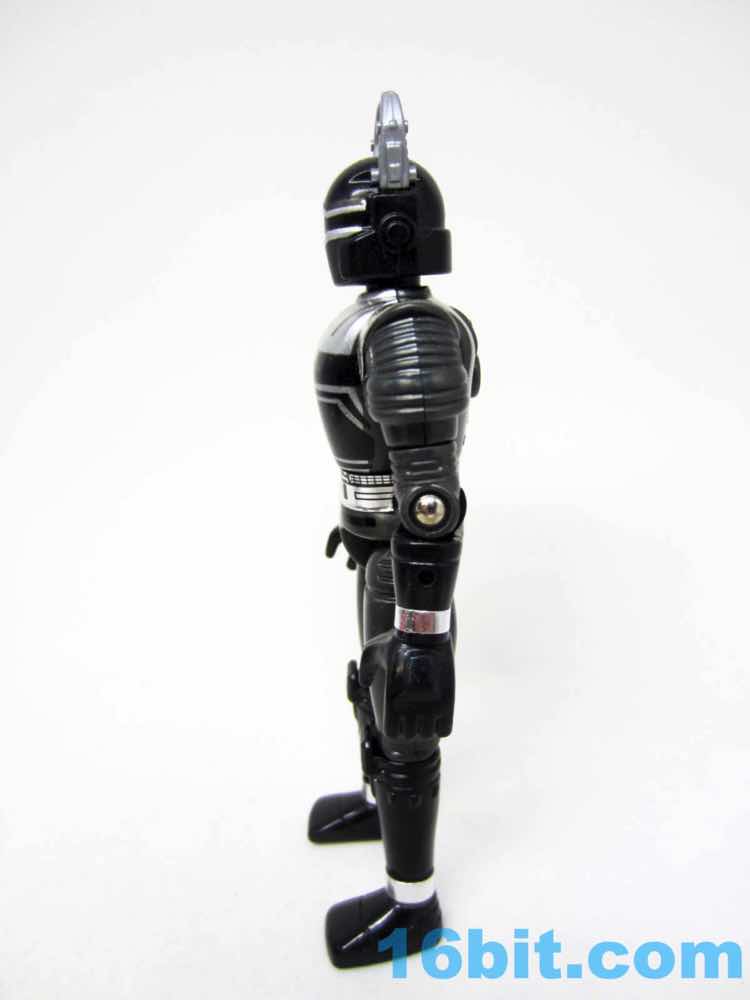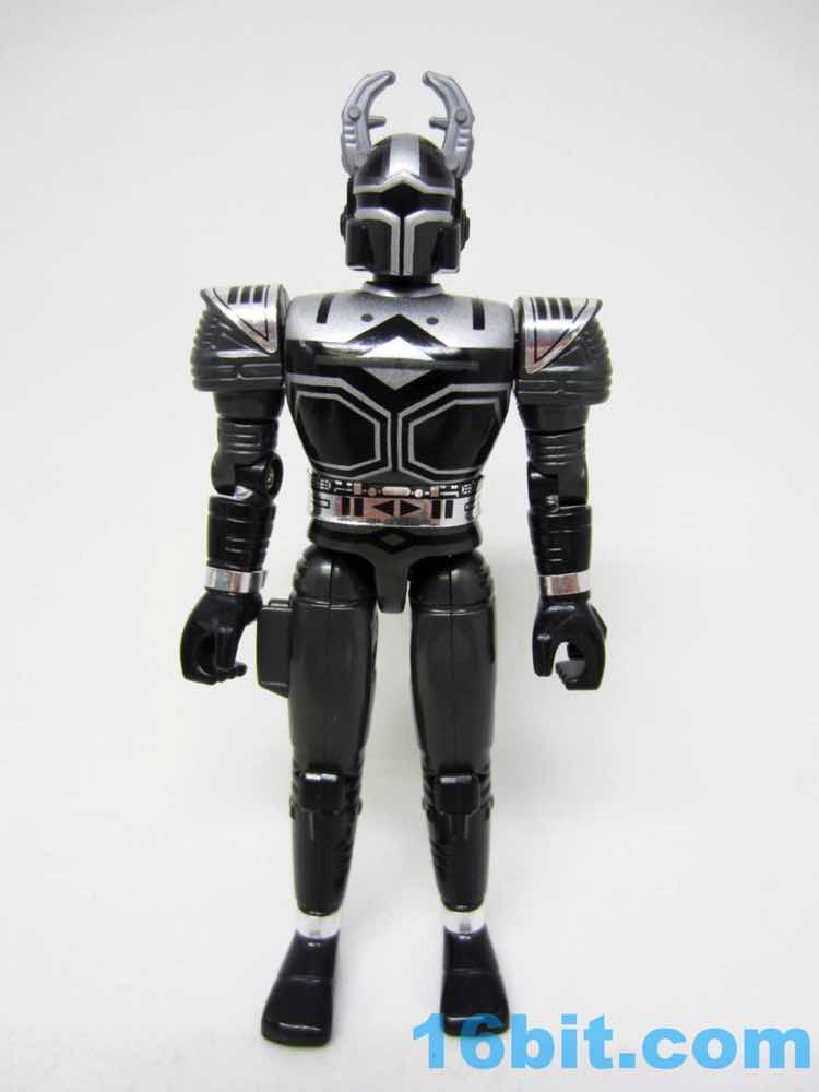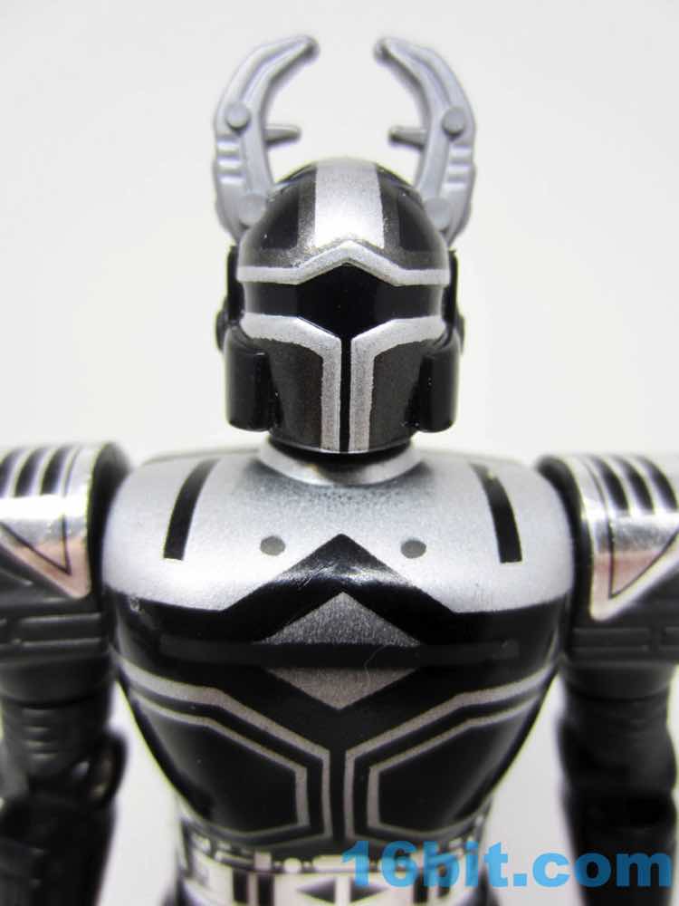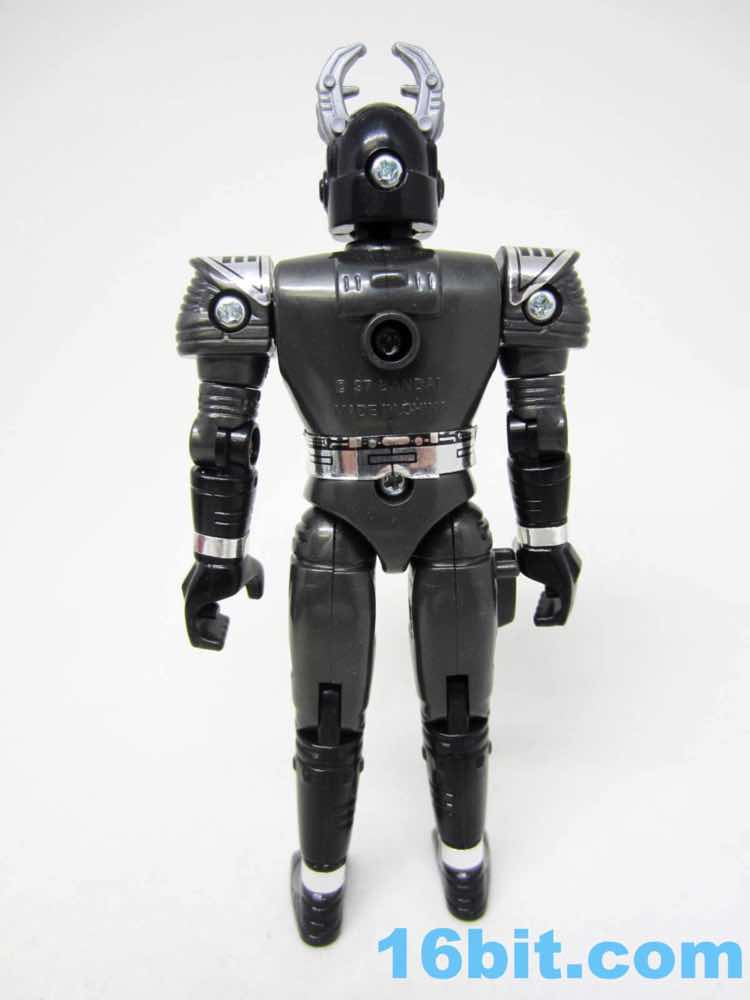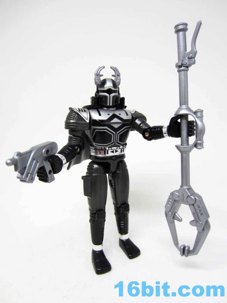 Or Borg bud is molded in black with some silver highlights including foil stickers, and a pretty nice helmet with a mushi helmet. It's thematically cute, and from the era of Power Rangers, Superhuman Samurai Syber Squad, VR Troopers, and other oddities from the Saban hall of fame/shame. Super-sentai-teen shows were all the rage, much like how we saw weird animal teams in the wake of Ninja Turtles. It was probably the last truly great big new trend in character toys, most of what we got since are revivals of old franchises and superheroes. These guys are almost retro, as those kinds of shows were on Japan a long time ago and still are to this day. I don't know it well enough to say it was very of-its-time or not, because to me it looks a little less forward than a Kamen Rider or an Ultraman. It's kind of boxy and bulky, almost crude and simple with lots of screws that make me think this was a very cheap figure to make. But it can stand, and sit, and hold its accessories - compared to a modern action figure this thing is incredible for the asking price.