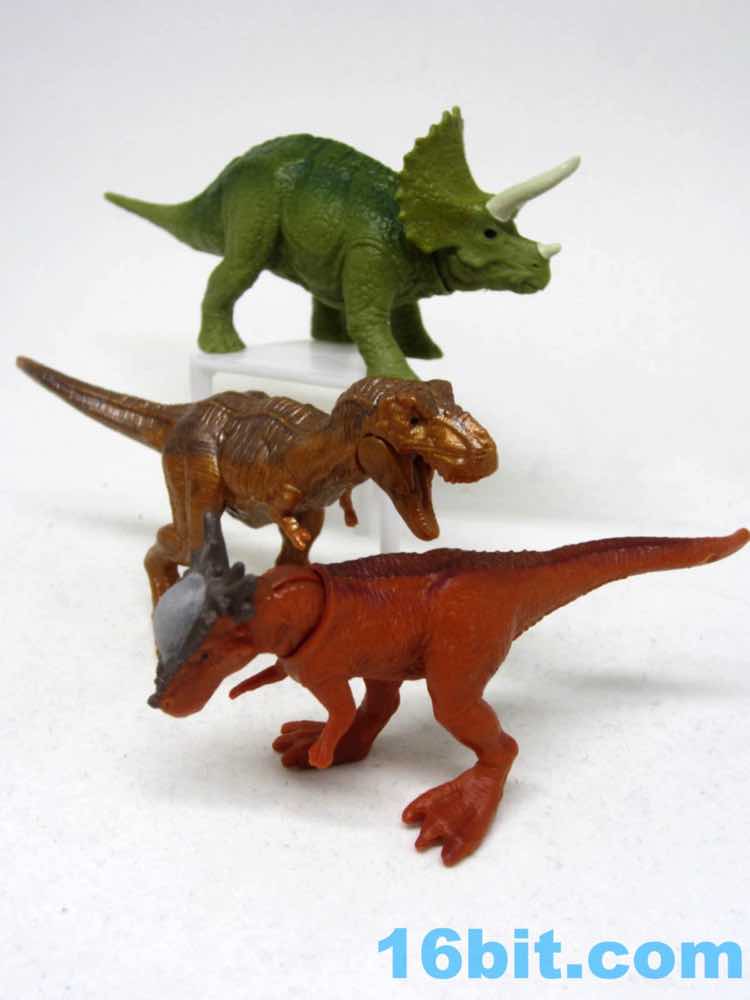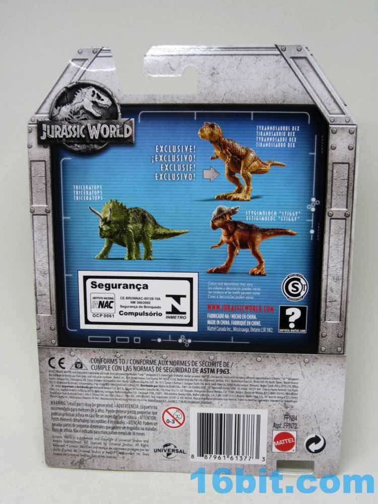 Mattel Jurassic World Tyrannosaurus Rex, Stygimoloch The scale is a mixed bag with these little guys, but Mattel's Tyrannosaurus Rex, Stygimoloch "Stiggy," and Triceratops are pretty great. Hasbro's small 3-packs and blind bags for Walmart were good, but these have one point of articulation each. Mattel seems to be consciously trying to one-up them on their action offering with bigger and arguably better mini dinosaurs. The "Dino-Mites" brand name on the cartons doesn't hurt, but the end user will never see this.
