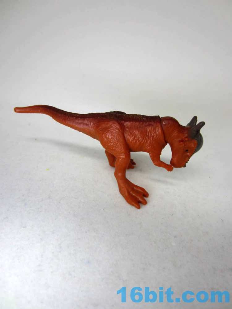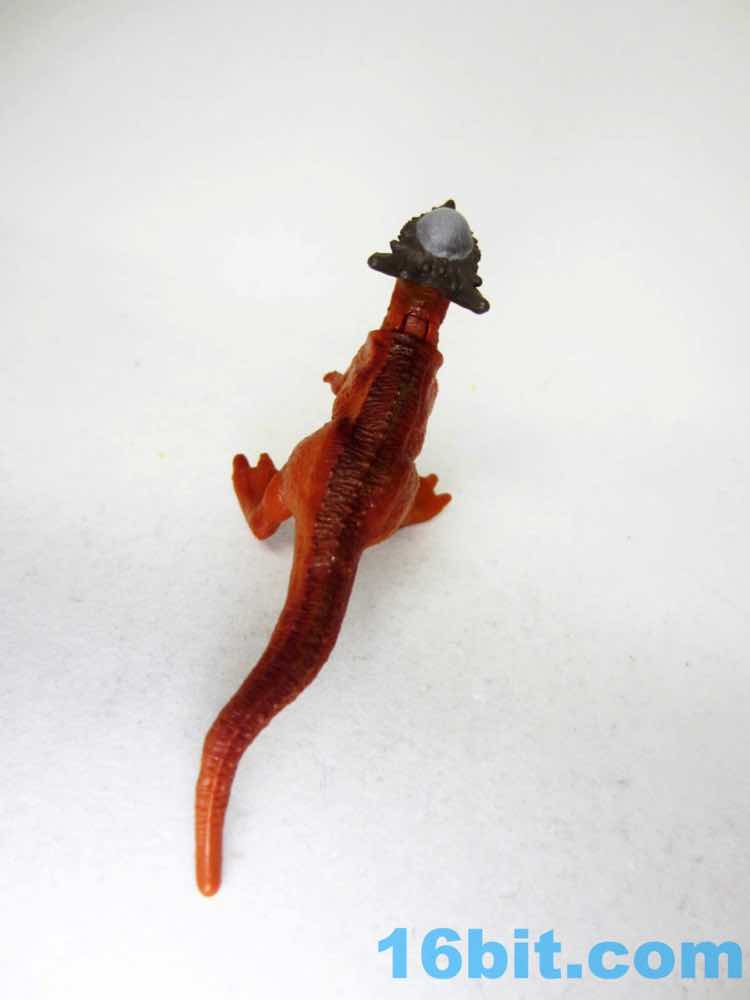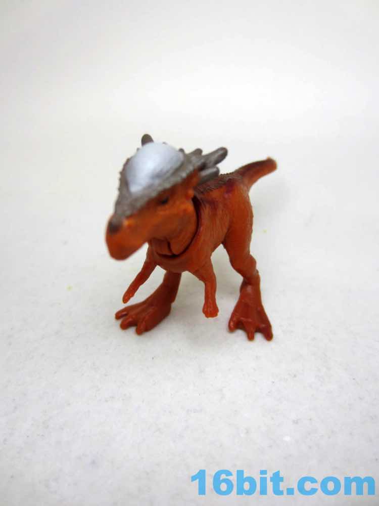 Supposedly Stygimoloch "Stiggy" has a significant role in the movie - as it is, she's a bonehead dinosaur with a nicer crest of horns out the back. Her feet aren't huge, but she stands up well. The head has a lot of sculpted detail, clearly showing someone put a lot of love into this tiny sculpt. At 3-inches long, there's not a lot for it to do other than stand and look cool. A neck joint ensures it looks extra cool, as the bone head can be posed head-butting or looking relatively normal with eyes looking forward.