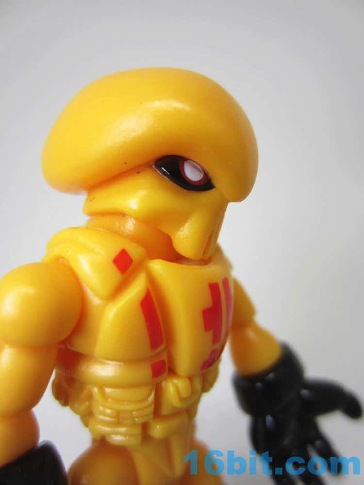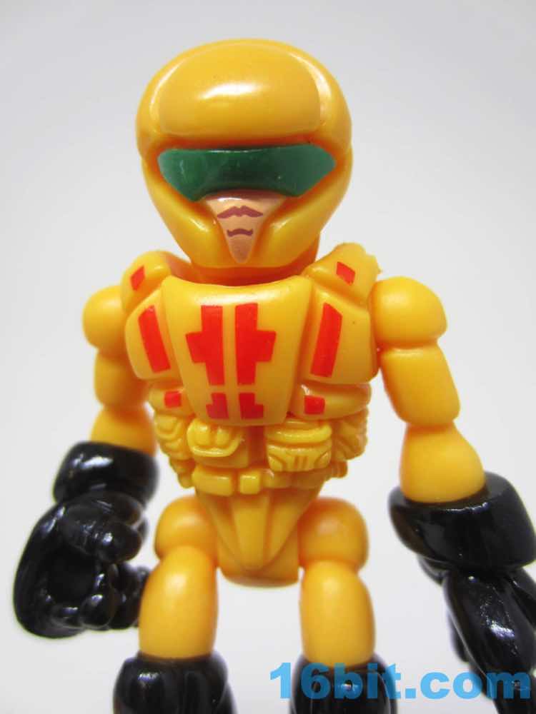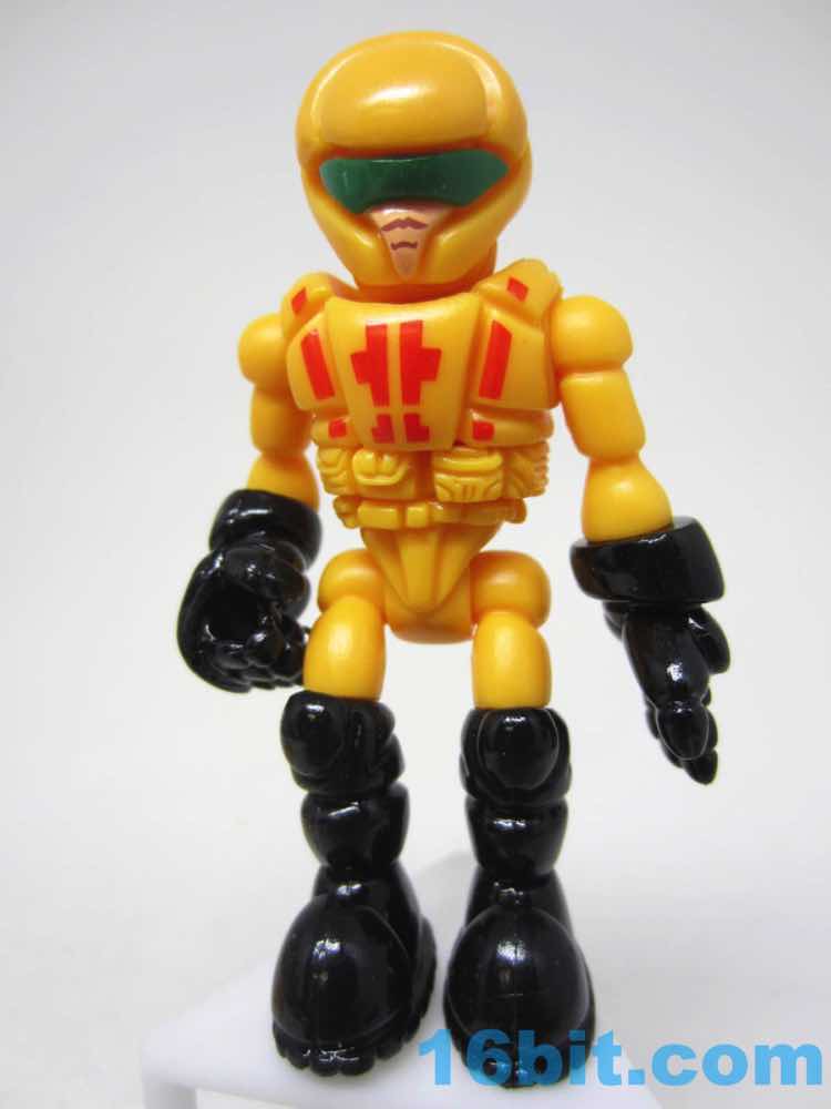 The yellow Retro Altrovos is a Pheyden body with Varteryx parts, with all the trimmings. Cast in what is basically school bus yellow, the figure has a green visor and fake facial hair as well as alternate limbs and clamp-on armor pieces. By default, he's basically Pheyden with a new head - but you can upgrade him with other bits and pieces.