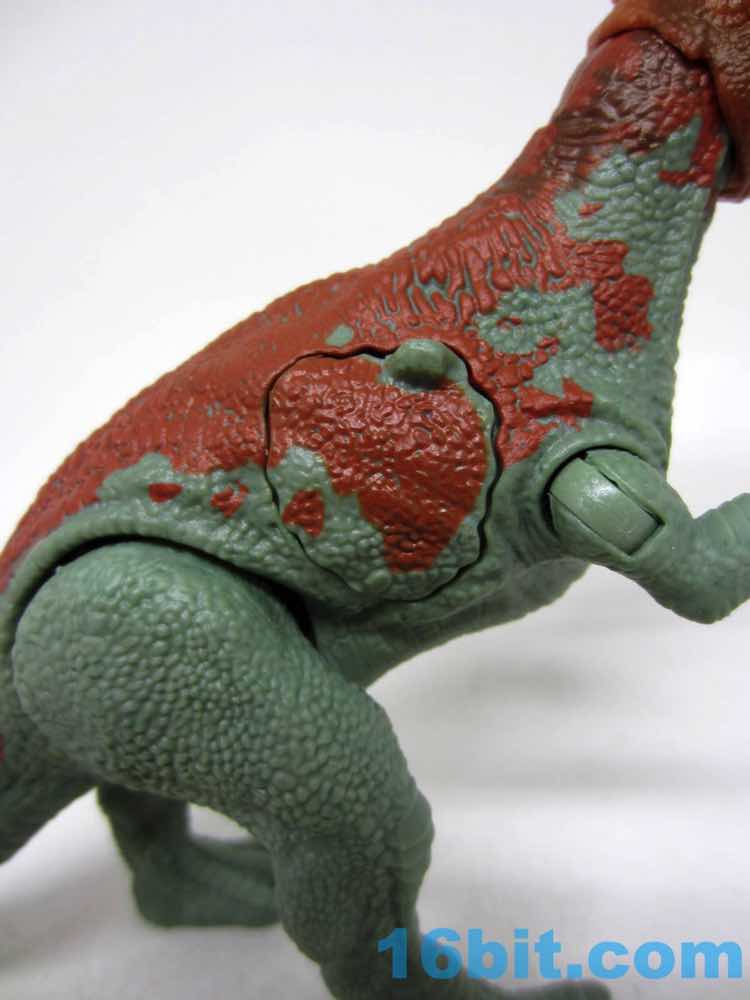 It's hard to surprise me with articulation on a dinosaur toy, but Mattel did it by achieving a better-than-expected center of gravity. She can stand, she can ram, and her head can move a lot and look around curiously. I had no problems getting her to pose, thankfully her arms and legs can swing out as well as forward so you can correct for any uneven surfaces.