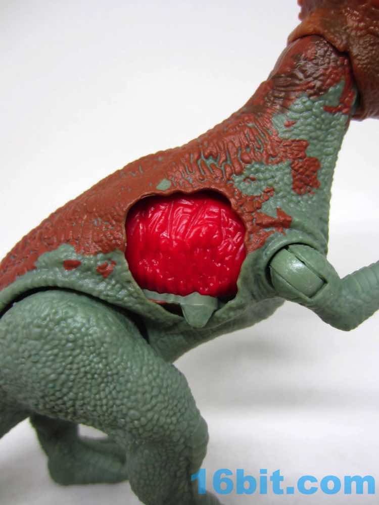 She's about 9-inches long when lined up in "ramming mode", where you can manually smash her in to other toys. Standing upright, she's about 5 1/2-inches tall. The sculpt is new, but there are enough similarities to the old one you can forgive me for running to my shelves to compare this year and last year's models. The similarities are many, but the scale detail has improved significantly. The new one looks ore like it could be a breathing creature with less fractures in the skull and a lot more bony horns, plus I dig the beak. Her tiny arms have ball joints for no good reason, so thanks to Mattel for just making it better than it needed to be.