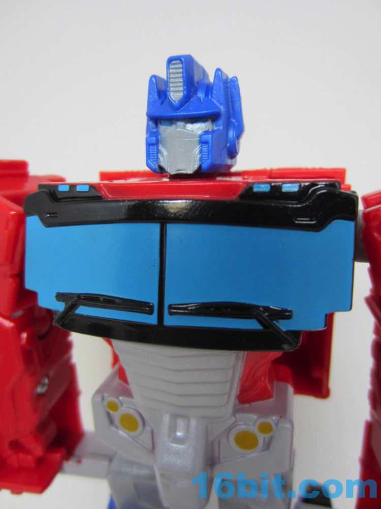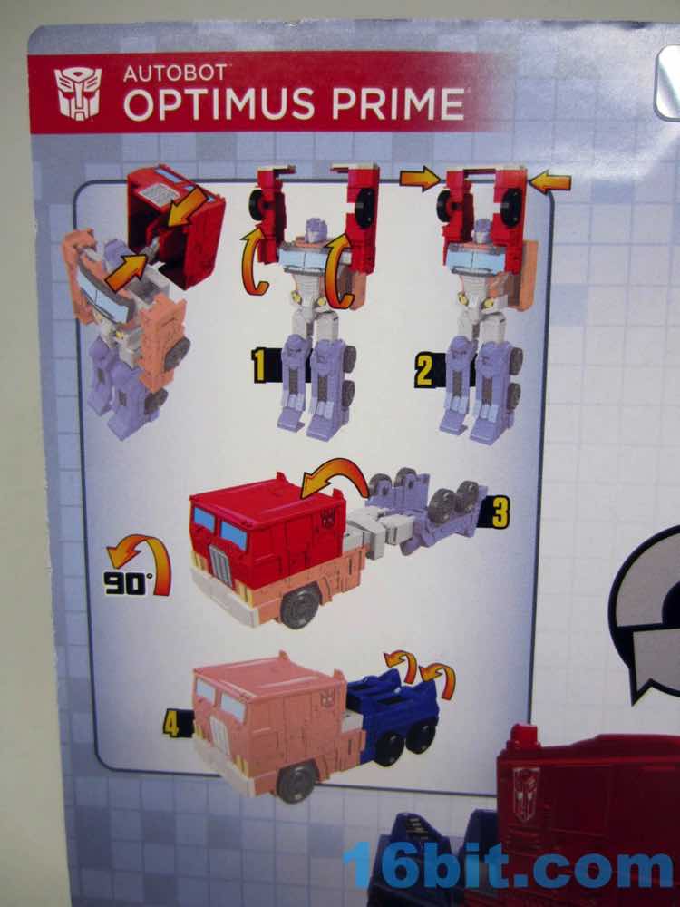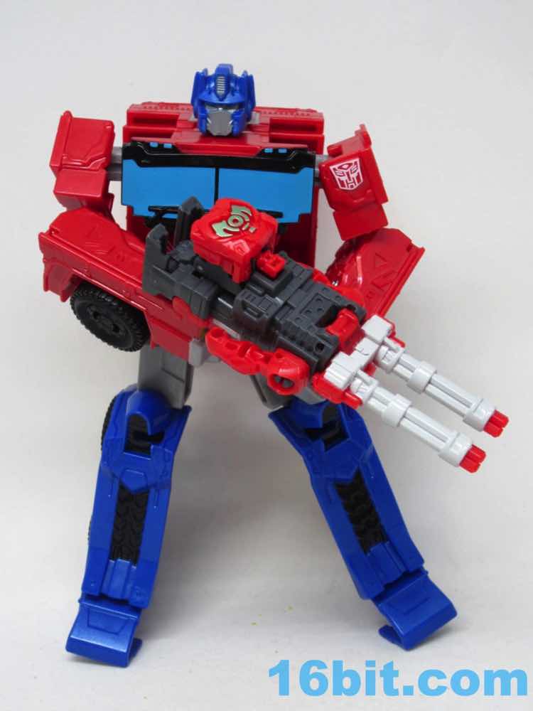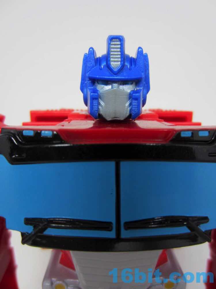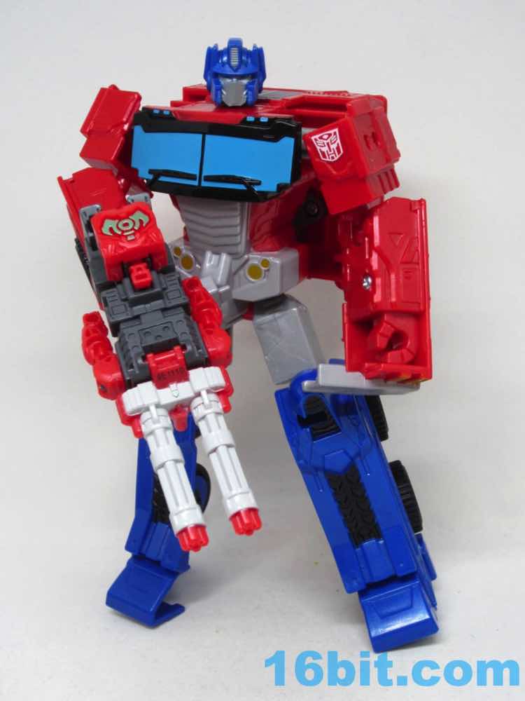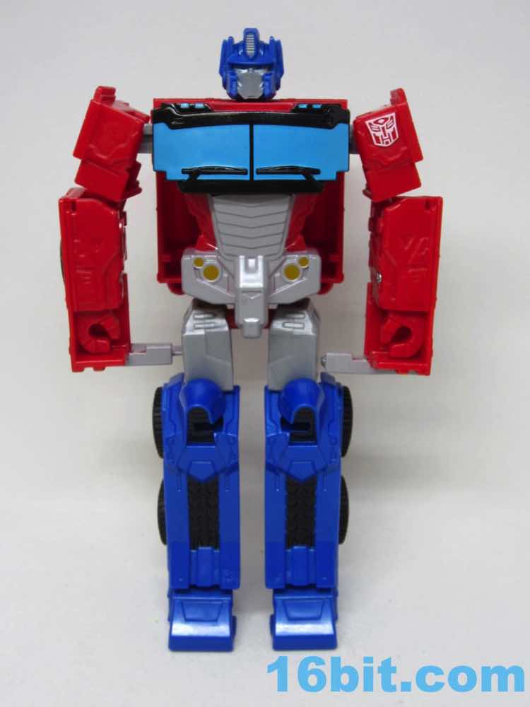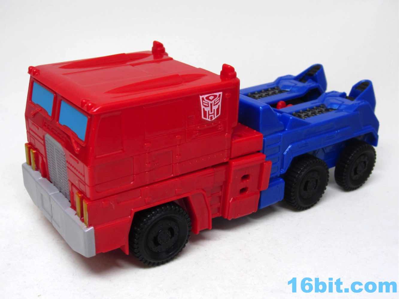 The Optimus Prime truck is not exactly a charmer - transforming it is fun, but it's lacking in paint and kind of long. It doesn't do much, but it doesn't have an abundance of visible kibble either. The snap-in wheels spin a bit, but not as well as the ones with metal pins.