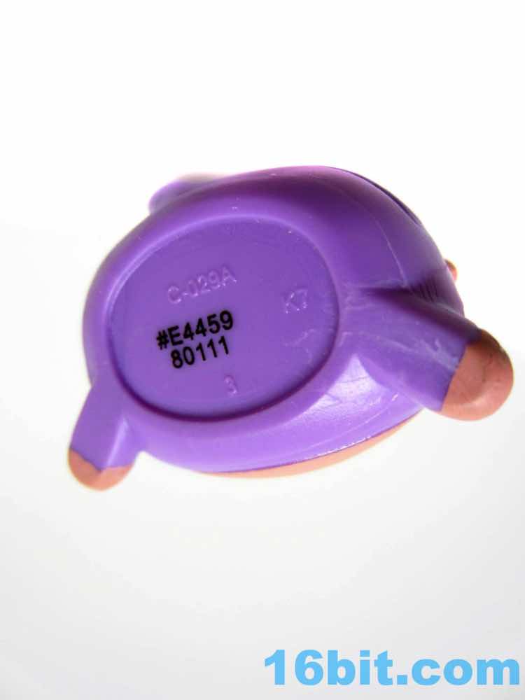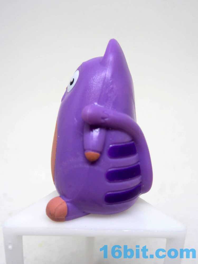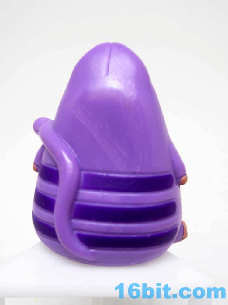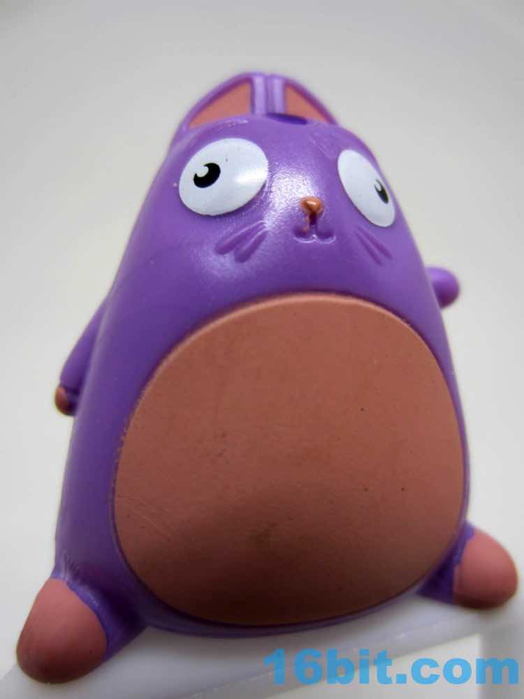 The chunky Mr. Mush sits on his back legs, with a tail holding close to the body as befitting a good slug figure. These things have to be cast out of a single piece of plastic to keep on budget and to stay sturdy, so it's a challenge for people to design something that looks distinctive and is one solid piece of plastic. If you collected OMFG or the MUSCLE revival, once in a while a figure will be made of two pieces of plastic for one reason or another - that means more tooling, and that cuts in your profits. Not so with the purple Mr. Mush. His eyes face opposing directions, his whiskers are fanned out, and he sports what may well be the very smallest smile I've ever seen on a toy figure of nearly any size. It's like the ":3" emote that the kids use.