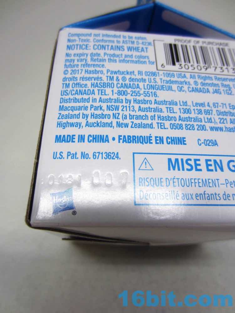 Item No.: No. E4459 Manufacturer:Hasbro Includes:Figure, Hot Sauce bottle, Paw Stamper, Sticker, Catalog/Checklist Action Feature:Play-Doh Excavation Retail:$2.99 Availability: June 2018 Other: Look for the date stamp on the back of the carton - it should be 18XXX 007. The "XXX" are numbers indicating which day of the year this was produced. We believe the 007 identifies this as containing Mr. Mush.