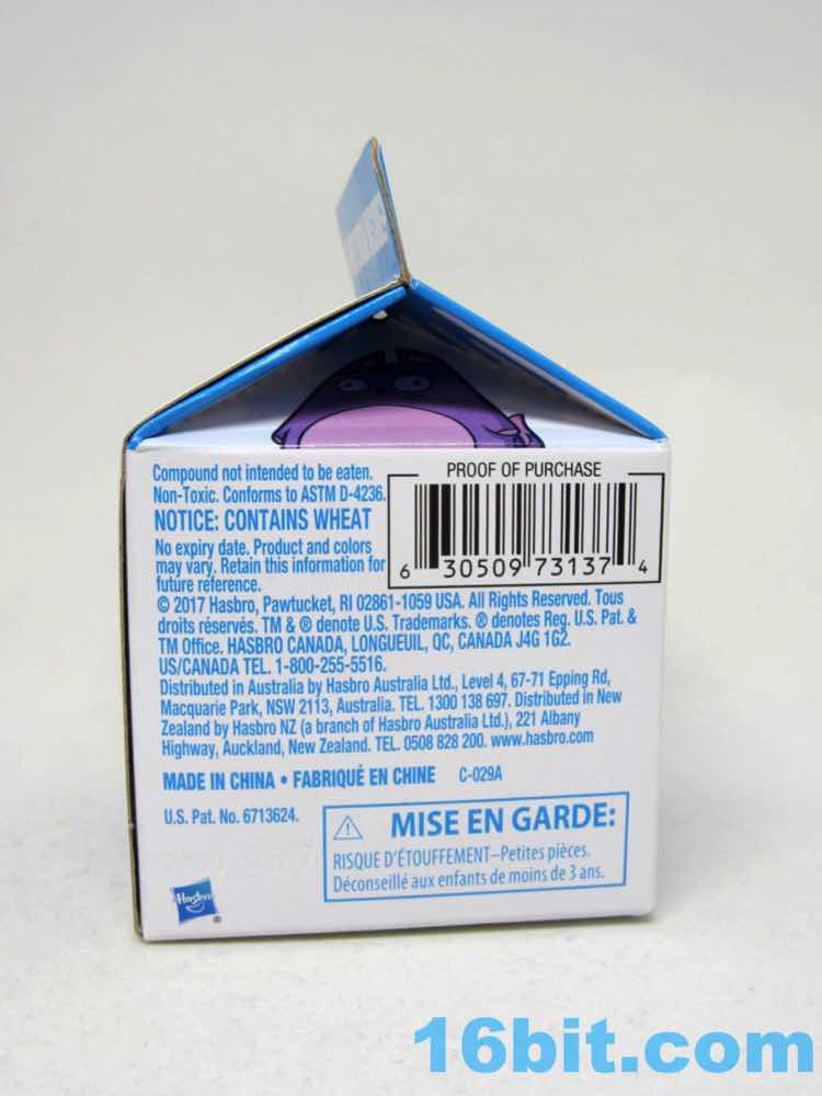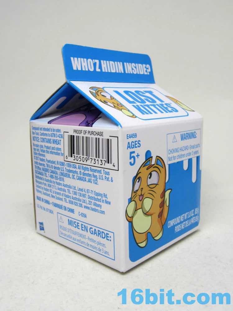 I heard some Lost Kitties buzz around Toy Fair. "Basically Littlest Pet Shop cats in milk cartons you dig out of Play-Doh," I was told, but was unable to catch the sneak peek. The cats come in colored dough, with vanilla being "common cats," chocolate being the next tier, and strawberry being the rarest. I got a Mr. Mush in this set, which is in the subset "#CATHLETIC" on the included poster checklist. a) I am very grateful Hasbro has taken to including a catalog in at least one of its product lines. b) I would have also accepted. "#CATAtONIC" as the purple, Grimace-like creature looks vaguely comatose. For kicks, let's also add c) I am impressed Hasbro put out a toy based on internet cat memes with no app or internet-enabled functioanlity.