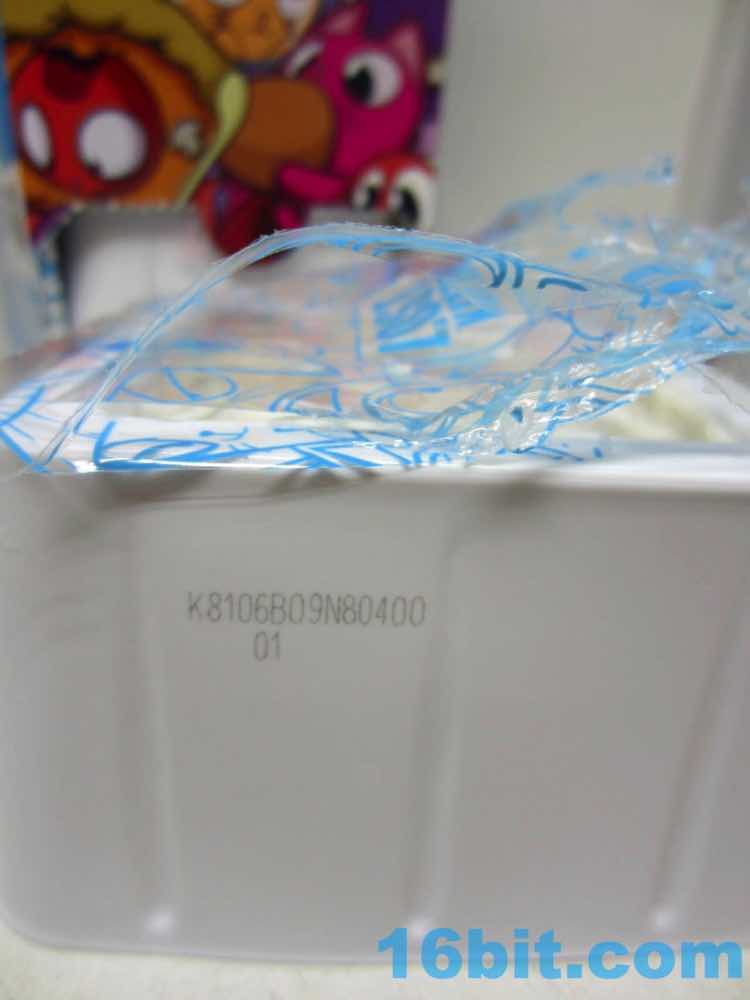 According to the booklet, the big cartons have 24 possible figures - a case of 4 tall cartons could have all 20 in it, but I don't know that yet. The milk carton opens and you slide out a tray with Play-Doh and a figure in it. Each tray has 1 or 2 figures in blind bags, 1 or 2 accessories, and 1 or 2 stickers in wrappers. So the figure is an opaque bag, under a wad of Play-Doh in a tray, in a sealed lid, inside a cardboard box. That's some security.