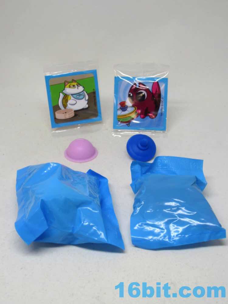 My "vanilla" pack had two figures - Stuffs and Specks. The cats are sold in different colors as single packs, but here they're a lemon coor and a purpley red, respectively. Stuffs is a portly kitty with a bib featuring a fish skeleton, looking like he either is very happy or is about to puke. It comes with a dining tray with a mold underneath to stamp out some sort of roasted bird - a good pick, and something to do with Play-Doh. It has no articulation, but it stands up nicely and is a chunky piece of plastic - a bit bulkier than the average mini-figure. Hasbro made it meaty here. There are sculpted bits and pieces on the back that could be painted like stripes, so aspiring customizers - have fun with this one.