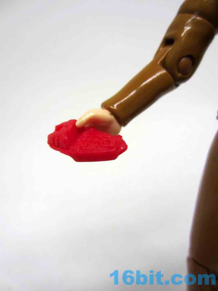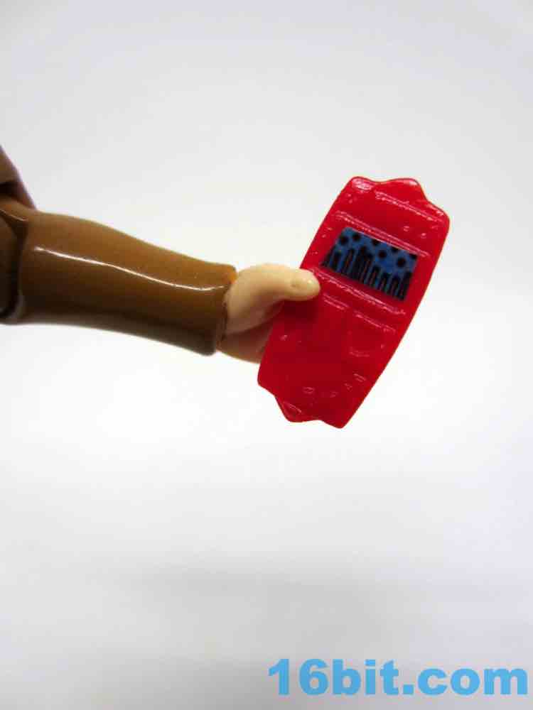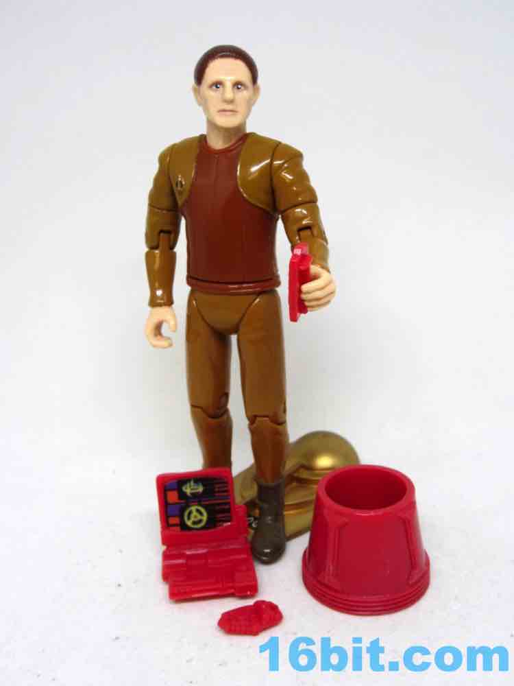The accessories aren't terrible. First and foremost, Odo's bucket is indeed buckets of fun - he can't do much with it, but I guess you can fill it with oatmeal and fling it at your Jake Sisko figure (sold separately.) Cast in red, it looks something like an incomplete drum or a fancy future spittoon. The Cardassian monitor is decent and has a sticker with the whole LCARS look, and the PADD isn't half bad. The screen isn't as fancy as the Starfleet models. The tricorder is even less fancy, looking more like a phaser with no real screen to speak of.