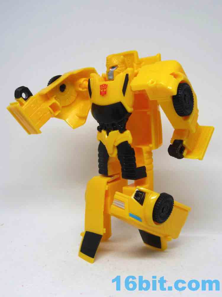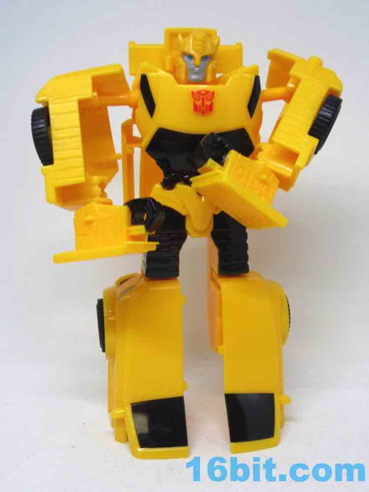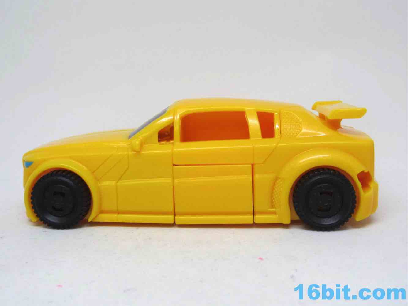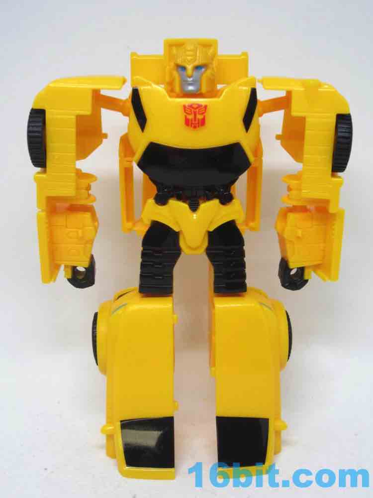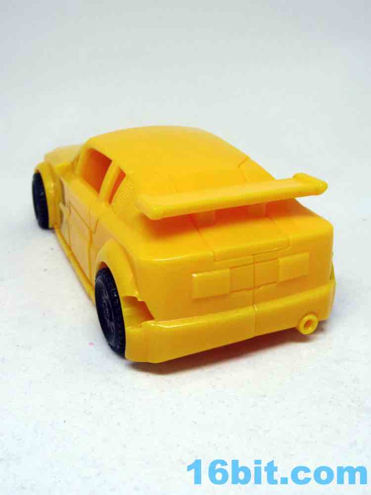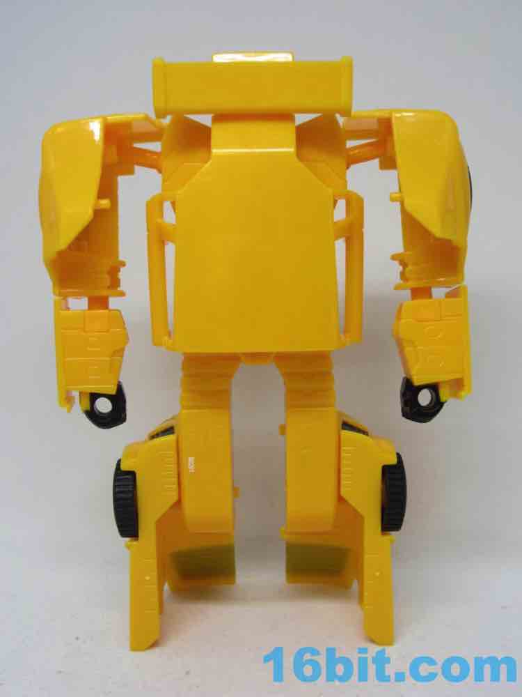 The Bumblebee car is sturdy and may well be the simplest transformation I've ever seen on a toy of this size and price. The arms tuck in, the legs fold back, and you're pretty much done.