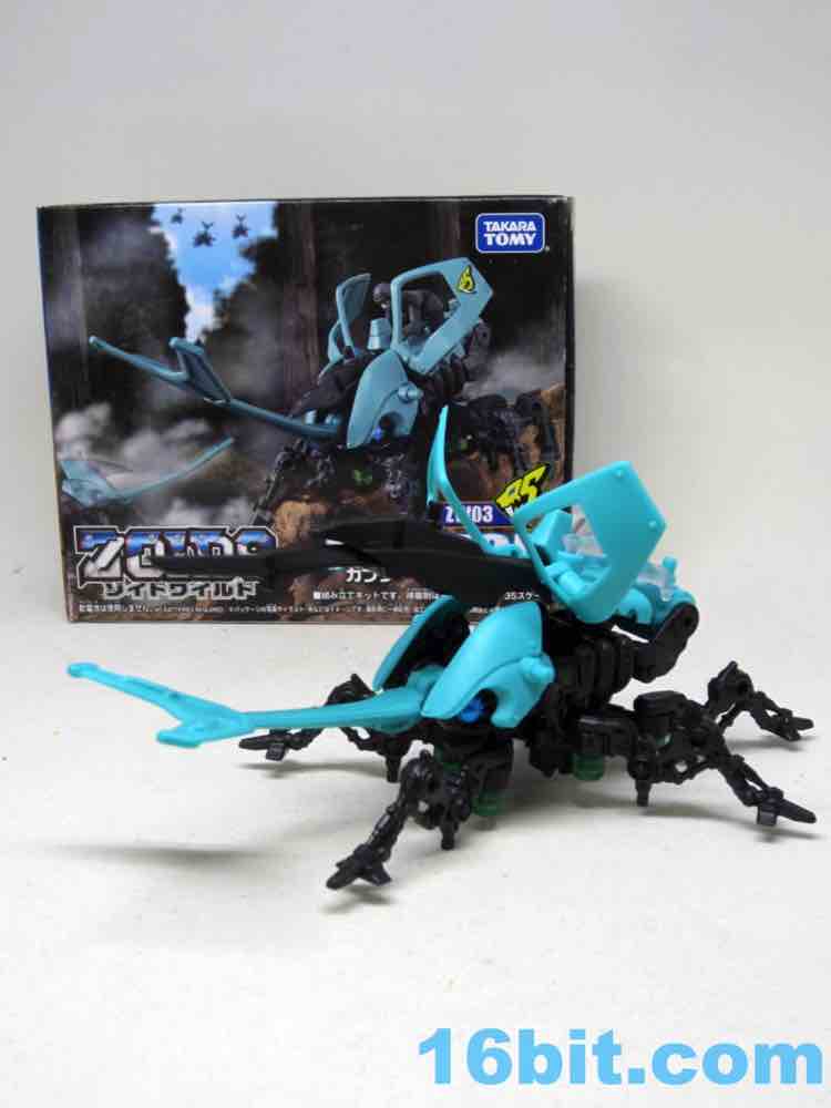 Since I'm really digging the new Zoids we're going to look at ZW-03 Kabtor. It has a new saber tooth tiger (or perhaps liger) faction symbol and the word "SUPREME" on it in large, friendly letters which makes this very much a great line for kids. Usually there were "Empire" and "Republic"-themed factions, but this beetle is effectively an update of the classic Saicurtis in size with different functionality. With the clips appearing online, I can only assume "Supreme" are the good guys, especially since kids friggin' love beetles in Japan.