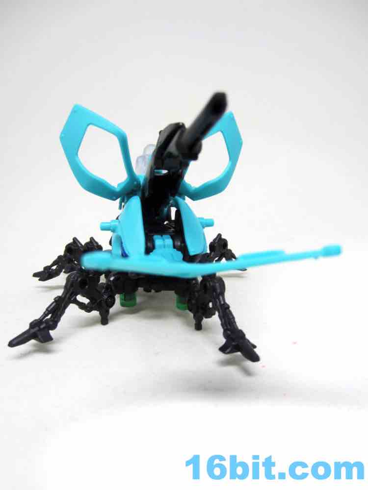 All kits in this line to date are grey robot skeletons with a colorful armor on top - this one integrates more of the bug parts in the core build, so it's not as easy to remove the teal fork or the driver's seat like the armor on the bigger toys. It's not a big toy, but it's kind of consistent with the downsizing we've seen in Transformers. It's a little simpler, the colors are pretty bright, but it's not as meaty as what you got for $10 back in the early 2000s. It doesn't feel fragile, but it's definitely a slight toy with big adorable eyes and 4 3mm hardpoints on which you could mount classic Zoids weapons if you had spares (or stole them from other kits, I don't judge.)