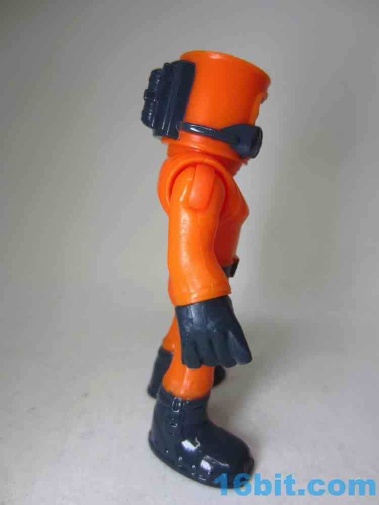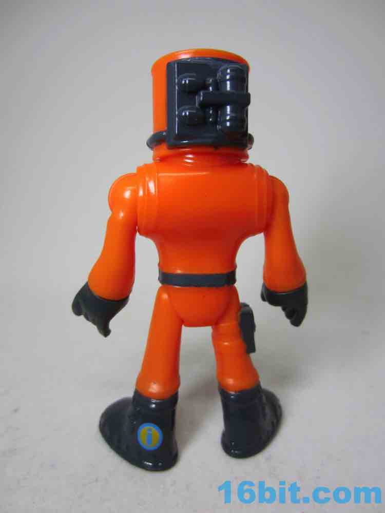 The 3-inch figure doesn't have a jointed neck thanks to the helmet, but the shoulders, hips, and wrists all move. The shoulders have a full range of rotation, allowing you to fling his arms forward to menace the Scooby-Doo gang that was sold at Toys R Us until their recent setbacks. The orange figure has a hazard symbol too, with clean orange bits and painted grey highlights - some of mine were a little banged up. As I picked the bag fresh out of a new case, that was a bit of a bummer.