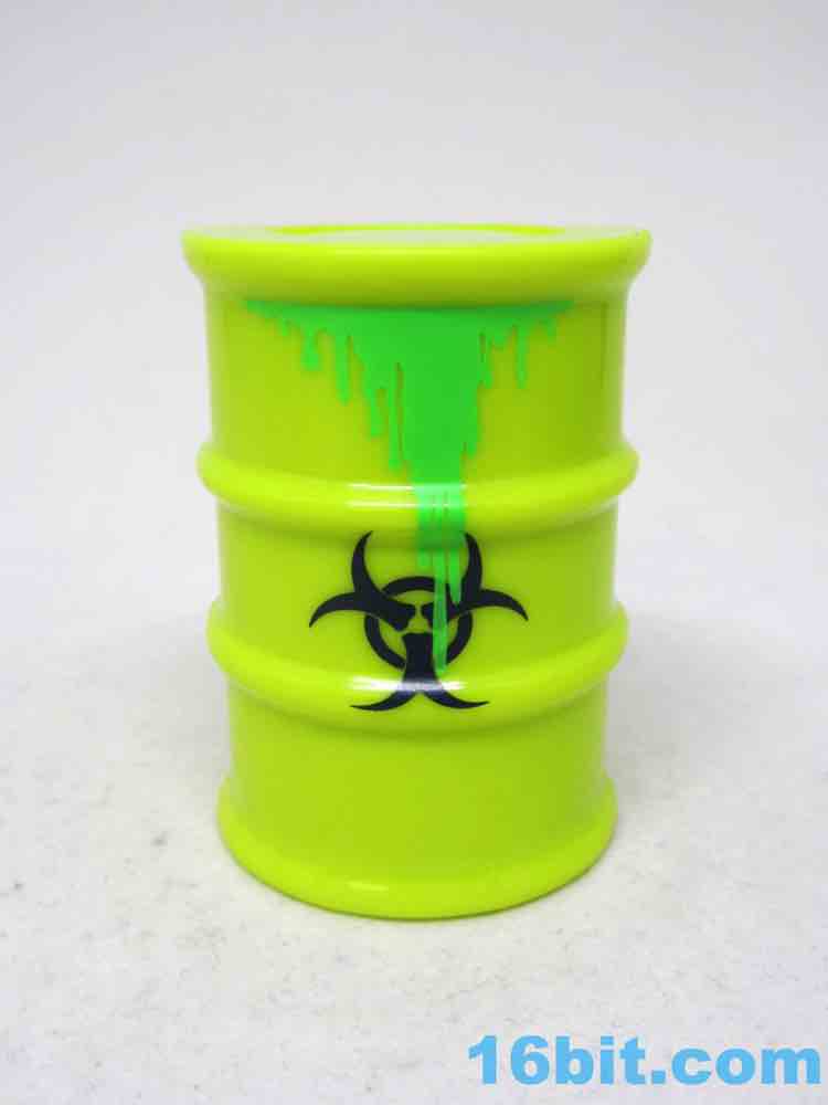 His accessory is a drum of radioactive waste, overflowing with green goo. It doesn't glow, but it does sport something that amuse you - it says "TM & C DC COMICS" on the back as the mold was previously used as an accessory in The Joker's Garbage Truck set.