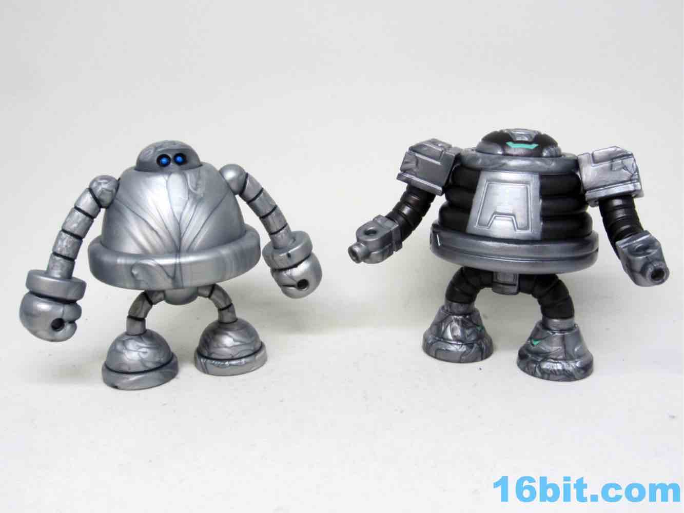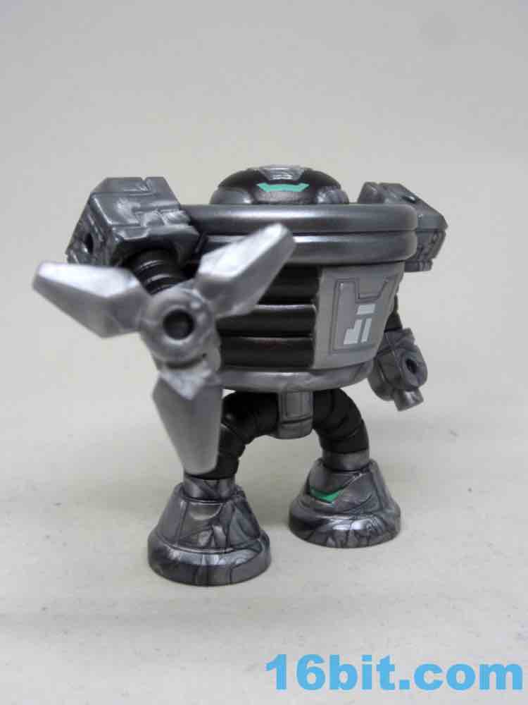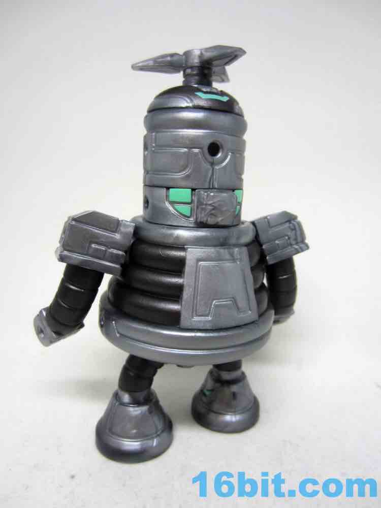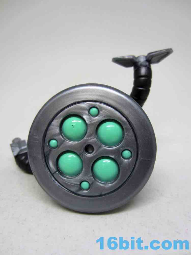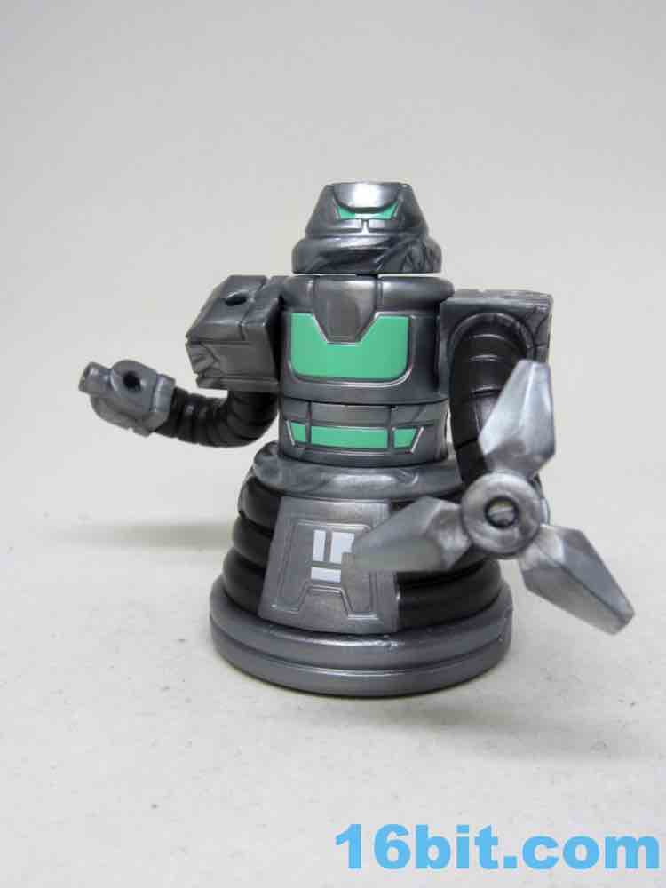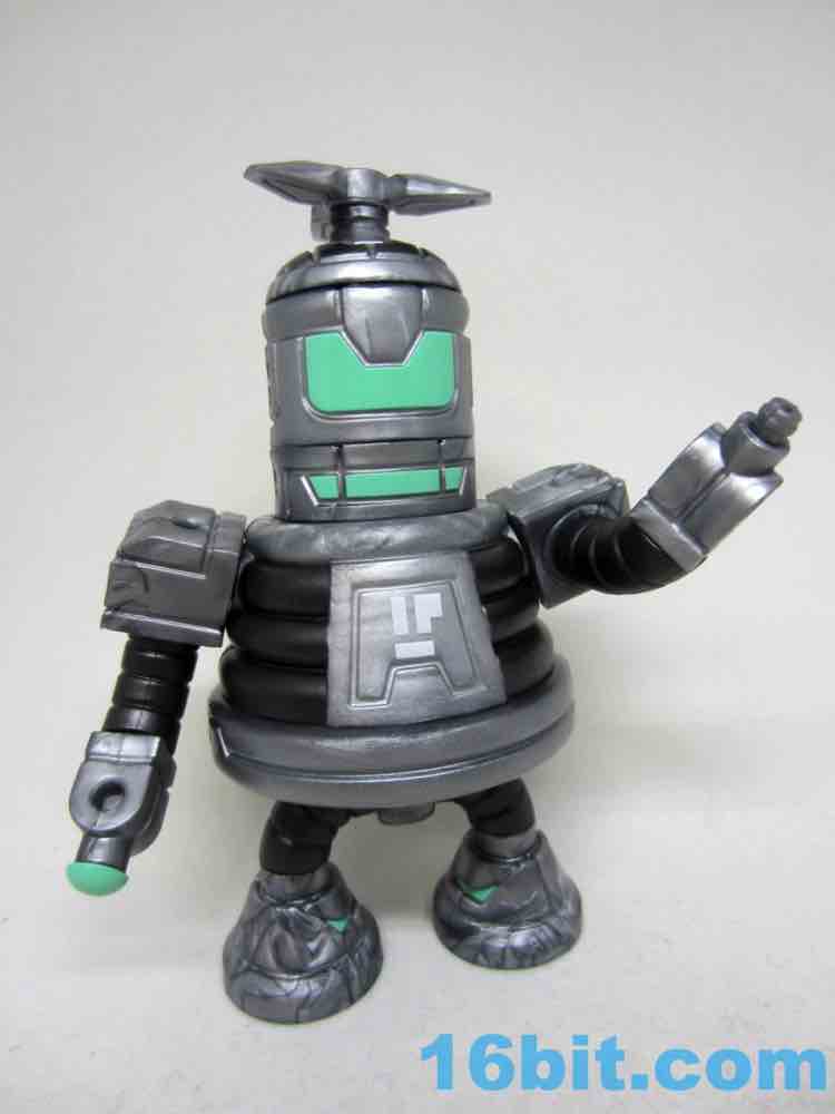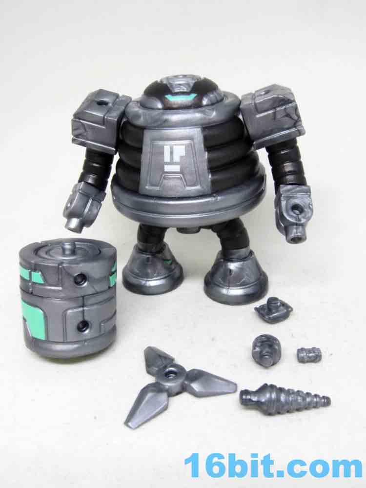 The 3-inch tall robot is pretty beefy, and you can reconfigure it in a myriad of ways. There's three big configurations I'm seeing out and about, and knowing Matt Doughty there are probably 30 more I'm not seeing yet. There are splashes of color on weird places - like the underside of the disc - that will likely allow for future large custom projects. What are the little aqua lights on the bottom there for? I have no idea - but they match Mechabon eyes, and some elements on the bonus parts which can be used for alternate weapon hands.