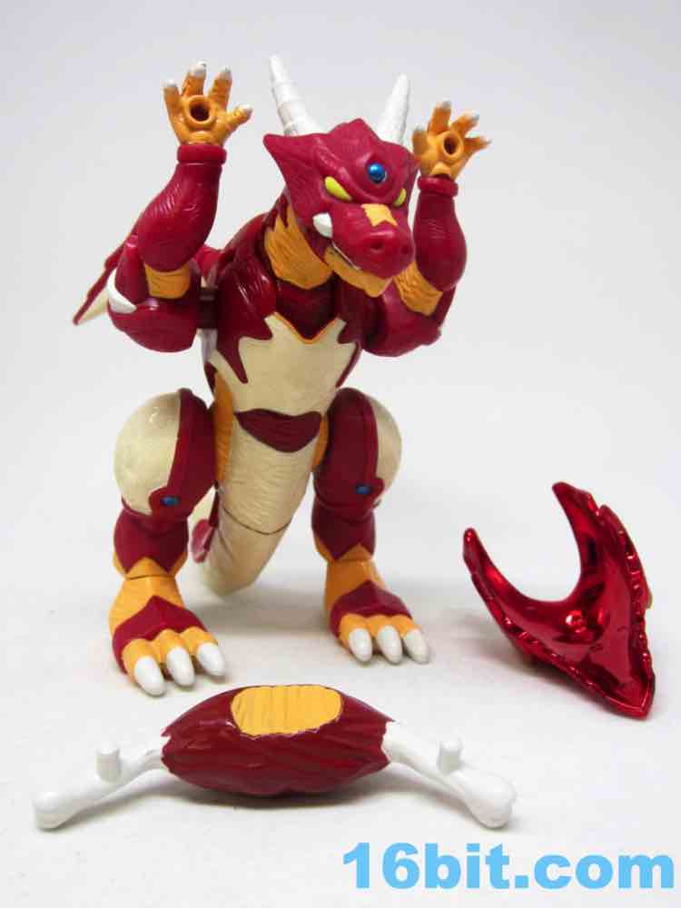 In addition to the meat, the figure has clip-on chrome red chest armor. These are all sculpted nicely, not as fancy as McFarlane's offerings from the era but certainly more impressive than many of the Sentai toys from the time. The figure doesn't do much other than eat, so the armor and food are really the core mechanism that makes the toy interesting. If you lose either, the figure just sort of opens its mouth and looks like it's wishing it could eat.