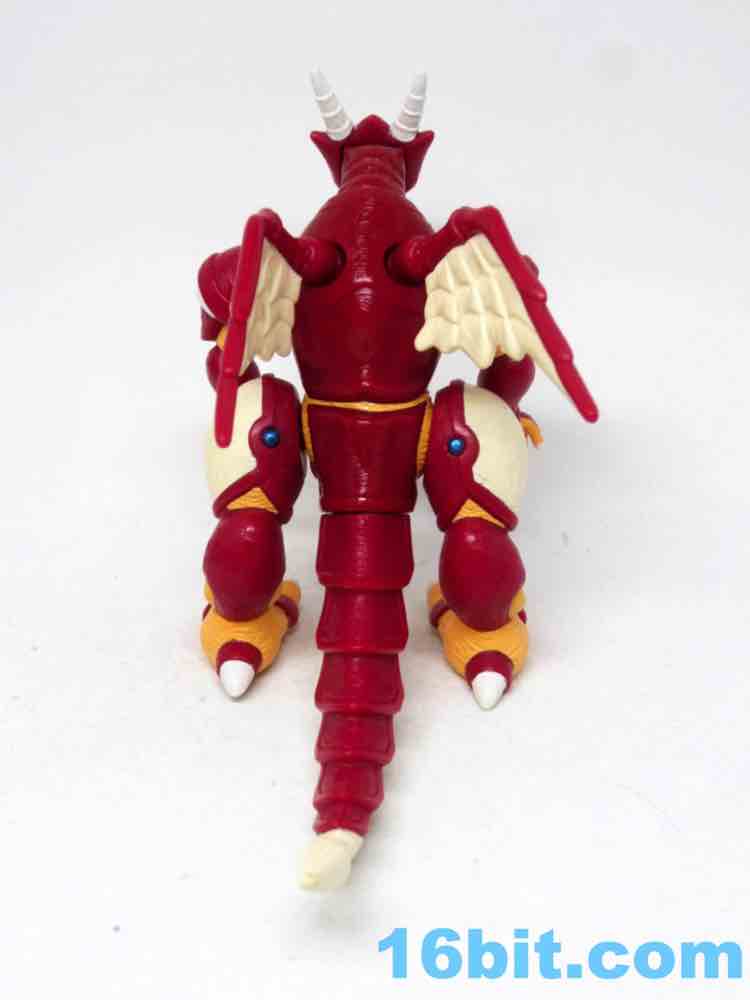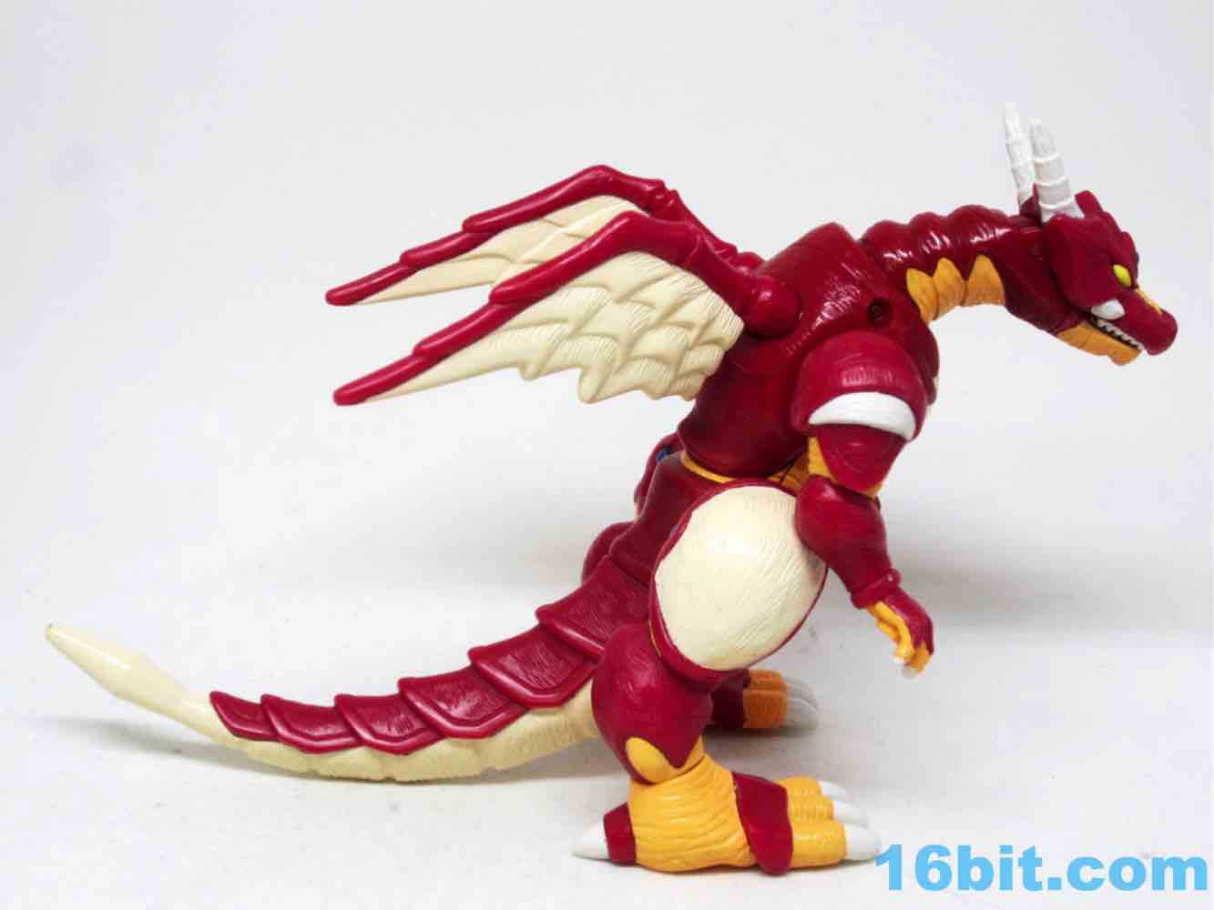 The 4-inch figure is a cool creature in a line consisting mostly of knights and warriors. It's about 6 inches in length, with articulated wings, shoulders, hips, ankles, and the neck/jaw can move too. There's a great mechanism activated by the leg - squeeze it, and he'll bite down. He includes a big slab of meat on the bone to "bite," and it's a lot of fun. The same basic head-drop-and-bite mechanism is currently being used in Mattel's Jurassic World line. However, this one also has flapping wings which are fun to play around with. Over time, toy companies seem to have whittled out the "toy" part of action figures, but the buyers of the 1990s still prized a lot of awesome action in the figures.