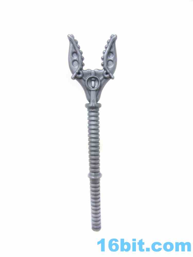 Our pal has 5 points of articulation - the neck doesn't really move - with restricted shoulder movement thanks to the armor looking like an actual armor suit over the figure. It's pretty impressive - the figure also holds a staff that resembles a snake's head. An Imaginext "I" can be found on the staff and on the figure's ankle, which sets it apart from the classic figure.