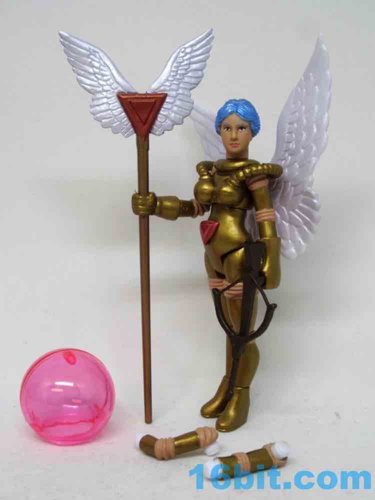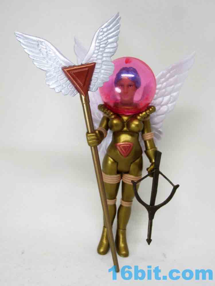 The figure's armaments include a winged staff and a golden crossbow, more or less the same things Commander Comet came with. The colors are close. She seems like another person from the same planet, with the same government-issued Venus suit complete with, uh, boob tubes and a bubblegum pink helmet. It's worth noting that the figure itself is cast in white plastic, like a lot of the later releases from this line.