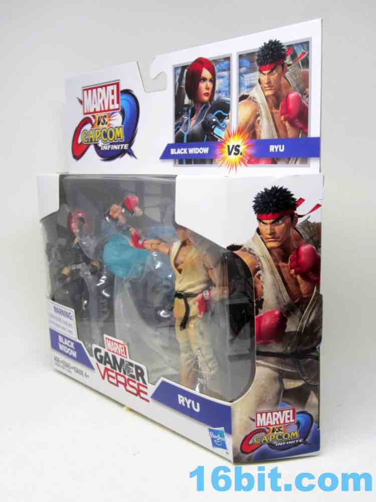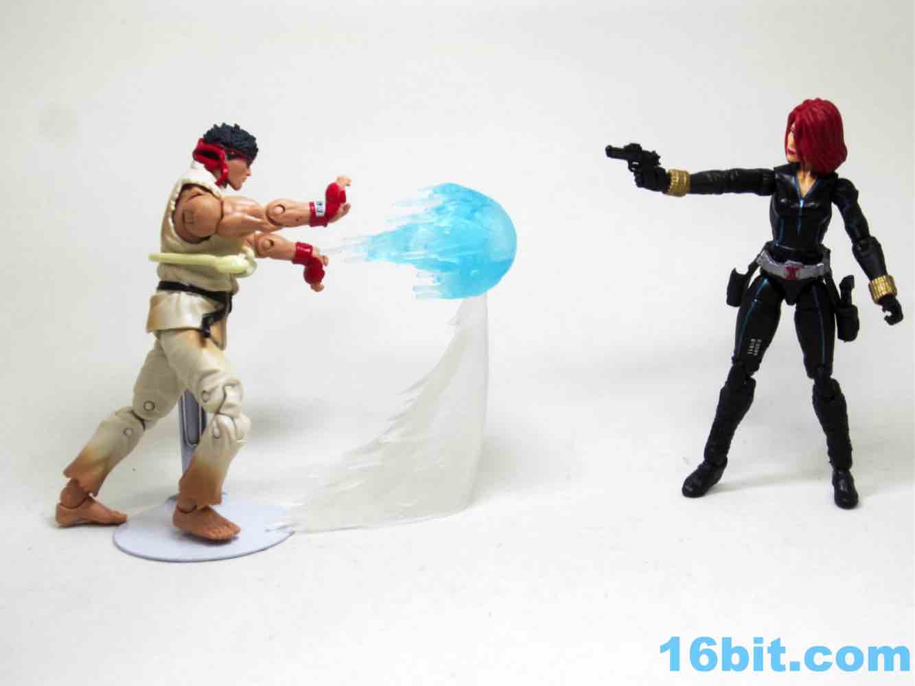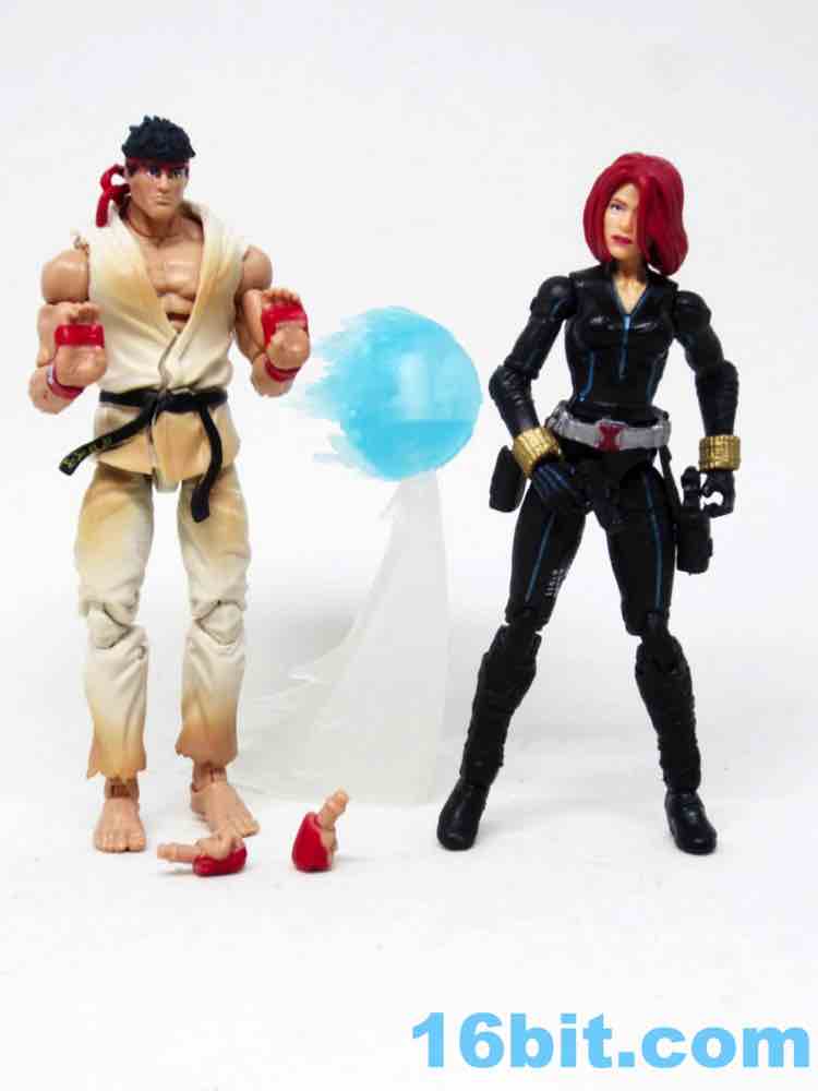 For sticklers for accuracy, you're not going to love this. If you like games, Capcom, and Marvel, it's a weird little set that draws on Hasbro's rich tradition of reusing molds regardless of accuracy. The popularity of 3 3/4-inch figures has diminished thanks in no small part to a split market with multiple scales, so mold reuse is a given and it wouldn't stun me to see Ryu tweaked and returning as Ken next year. And yet we have no Player 2 Orange Hulk yet. I love how they came up with a weird way to integrate energy into the fireball stand, and it is a fun figure with which to fidget. When it comes to both characters you can get better figures - but not in a two-pack, not at this scale, and not from a fighting game. It's pretty good if you like what you see, though, and maybe you'll want to scrape off Black Widow's identifying white numbers and letters to make this set just a little bit better.