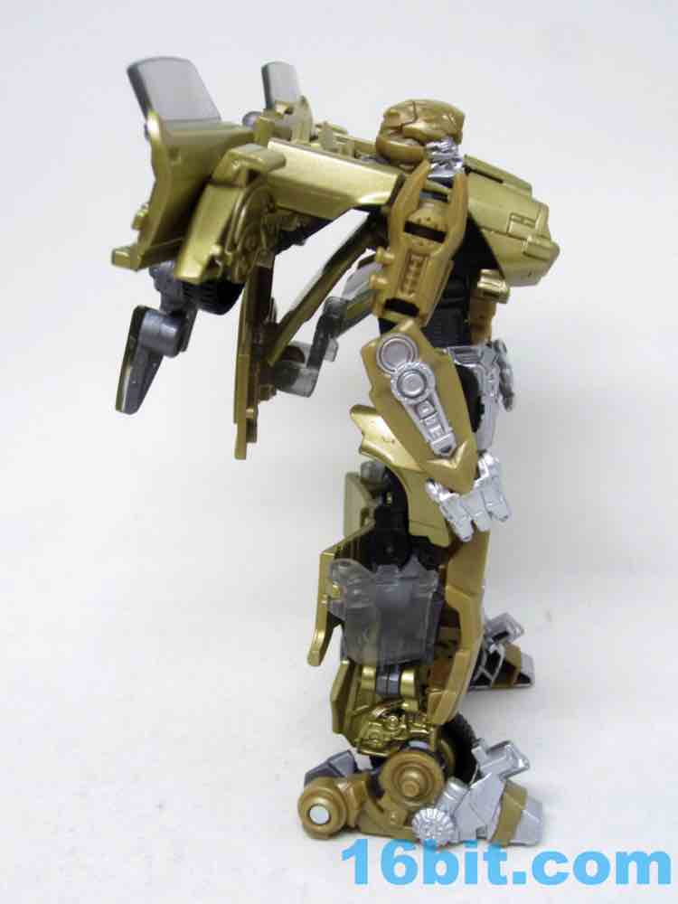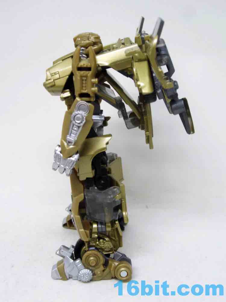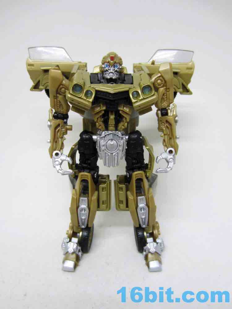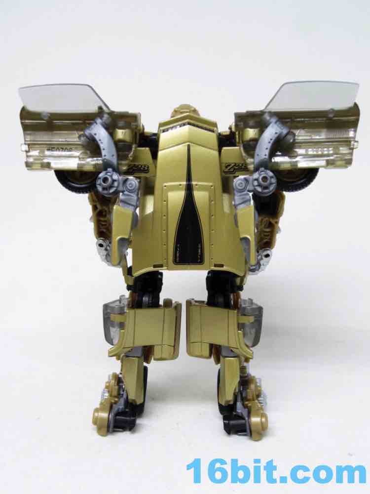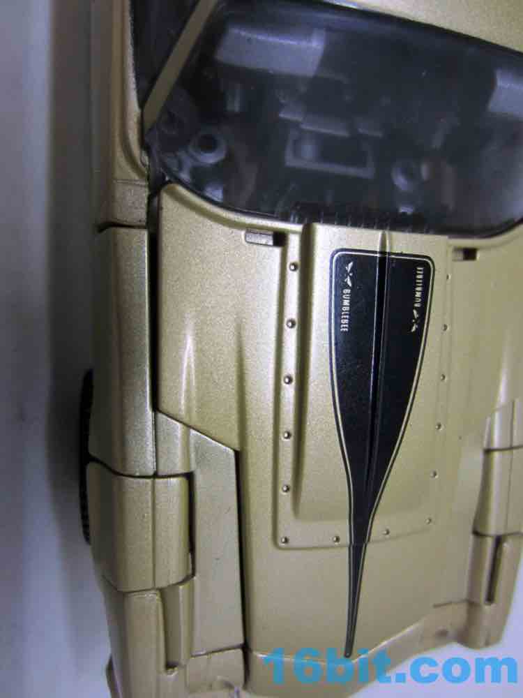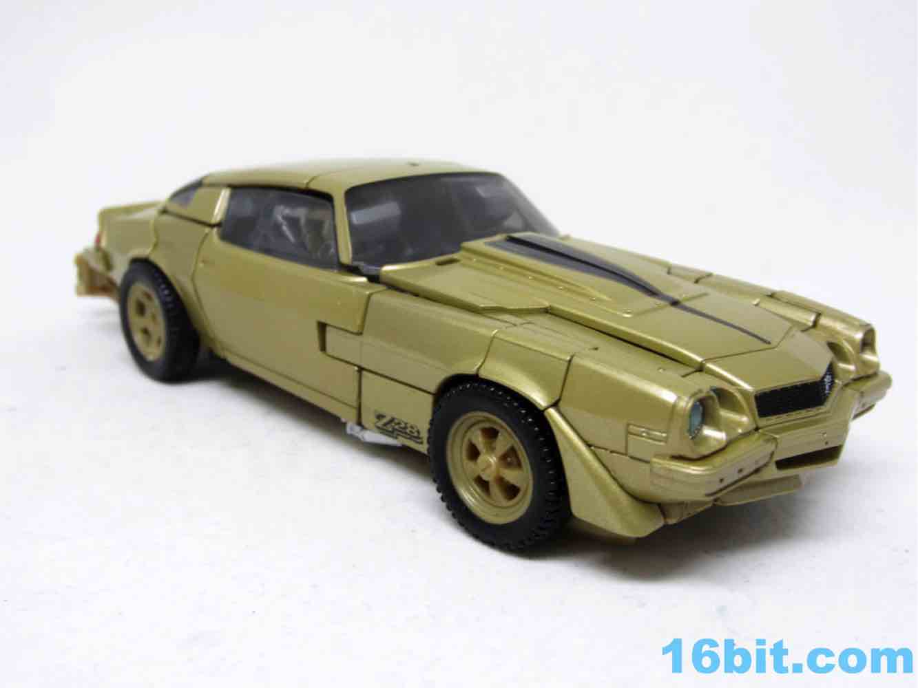 Bumblebee is a bit more than just a palette swap. The car detailing is noticeably different, with added details and words painted on the car that you don't normally see on the yellow version."Z28" and "Bumblebee"'s movie logo with a stinger appear on the body of the vehicle, but are generally hidden in the golden robot mode. The toy is slathered in paint, but the unpainted gold bits look good too. There's a lot more bright silver rather than just dull grey, offering a nice contrast to the first release of the mold [FOTD #1,947]. I find the figure pops apart a lot more easily and is more finicky, but perhaps yours will be less of a pain in the neck. The gold and silver go together nicely and in person it's quite gorgeous - but it's thoroughly inessential to having a complete Studio Series scale collection since so many versions of this Bumblebee exist. Heck, the Autobot makes up about 1/3 of the line so far.