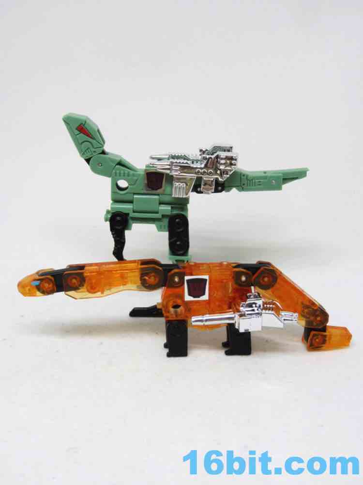 The tapes are the selling point for a lot of fans, given the original molds for Uruaz and Dairu were never sold in the USA. Also, it looks like these aren't the original molds - some details are a little different, the toes don't quite fold down for the combined mode. Each cassette is just fine though, and the individual dinosaur modes work fine with their accessories. The combined head looks off as some have pointed out, and of course Uruaz is a Decepticon orange recolor that doesn't look like the original Saur/Zauru. It's different. It's also worth noticing that Dairu has very different rivets and even some altered sculpted details from the original Dile toy. I don't think people with the genuine article are going to be too concerned about someone confusing the reissues for the originals.