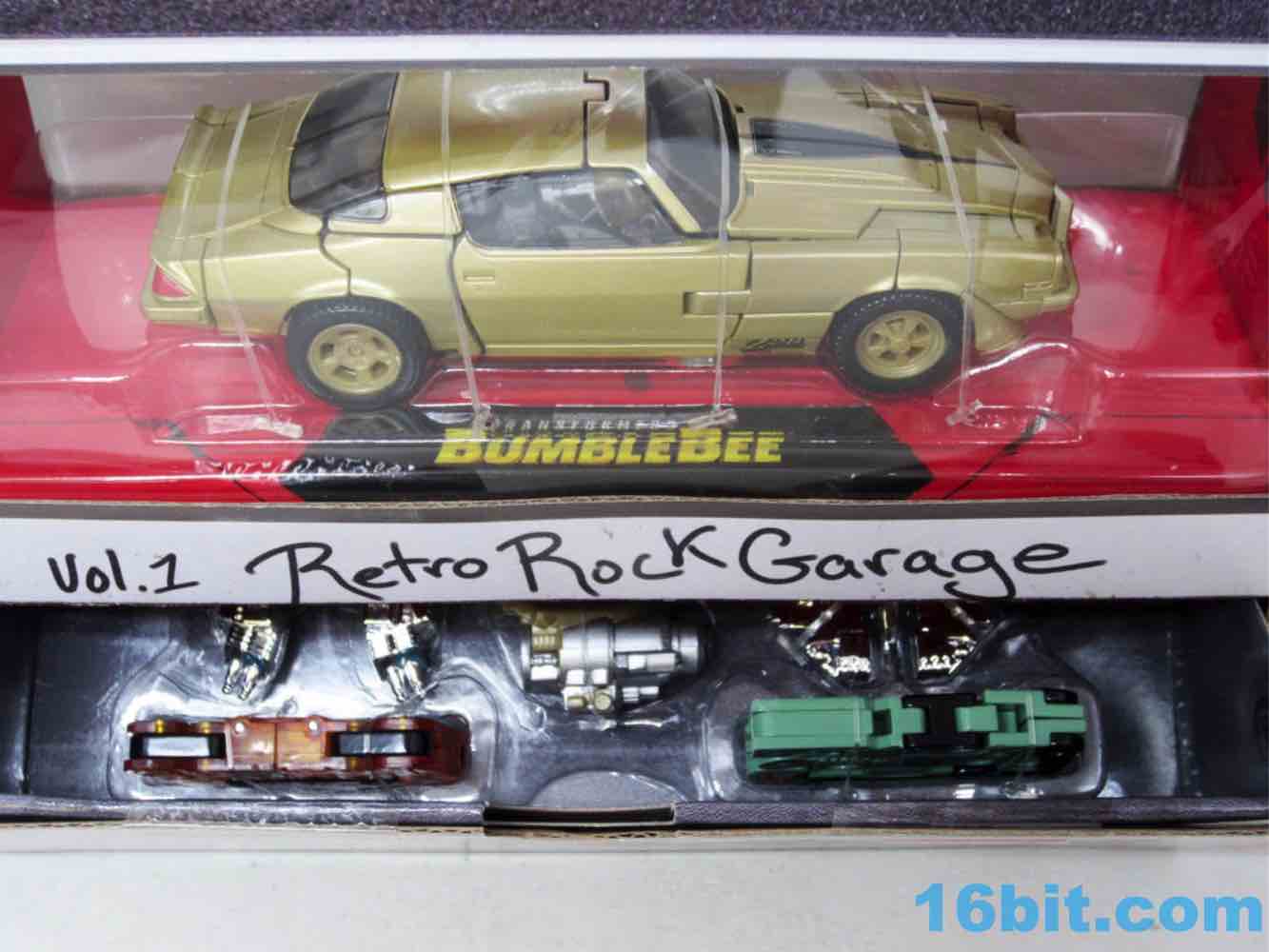 The Bumblebee Vol. 1 Retro Rock Garage Action Figures is an ornate set sized similarly to a Voyager-class toy, but it's a lot like a cereal box. There's something you have to choke down to get to the prize inside. Completists are tested with this odd set - movie fans have to buy a mold they probably got with two super-rare molds that seem to be new versions of Japan-only cassette dinosaurs. It was $60, so you got a $20 Deluxe with two very expensive reissue tapes.